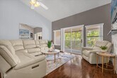 Welcome to your stunning new home in this exquisite, better-than-new waterfront condo located within The Sanctuary at Ventura Country Club a prestigious, golf-manned gated community that perfectly blends resort-style living with the vibrant lifestyle of Orlando! Upon entering this stunning second-floor condo, you will be instantly impressed by the inviting open floor plan and the array of luxurious updates that enhance every corner. This remarkable residence boasts a spacious great room with a vaulted ceiling, featuring a custom media wall adorned with a stone accent, a marble mantel, and a dedicated wall niche. Elegant wood laminate flooring flows seamlessly throughout the great room, enhancing the overall sophistication of the space. The thoughtfully designed layout includes comfortably sized bedrooms, offering a split plan that ensures privacy. The gourmet kitchen is a culinary dream, showcasing exquisite white shaker soft-close cabinets, striking granite countertops, and a tasteful backsplash. Enjoy the convenience of a breakfast bar along with a stainless steel single bowl sink complemented by a stylish brushed nickel commercial faucet. The kitchen is further equipped with high-end stainless steel appliances and elegant tile marble flooring, making maintenance effortless. Both bathrooms have been stylishly modernized with white shaker cabinets and granite countertops, featuring generous walk-in showers with beautiful glass doors, pebble stone niches, and elongated toilets. The elegant illuminating mirrors and marble flooring add to the chic ambiance of these spaces. The crown jewel of this condo is the oversized patio that overlooks a serene water view, complete with the soothing sounds of the fountain. The patio area serves as a perfect bonus room for unwinding, reading, meditating, or enjoying your favorite shows. Notably, the roofs of the condos were replaced in 2020, ensuring modern quality and assurance. The stylish 1-car garage has been finished with protective epoxy for durability and improved aesthetic appeal. As a resident of The Sanctuary, you will have access to a private heated pool, and you're just a short stroll away from Lake Fredrica, where you can picnic by the water and bask in the breathtaking sunsets. This condo truly embodies the best of luxury living in a vibrant community don t miss the opportunity to make it your own! Indulge in a wide range of resort-style amenities provided by Ventura Country Club. These include a semi-private 18-hole golf course, expertly redesigned in 2022 by Carlton Marshall Golf Design. You can also make use of the golf pro shop, expansive putting and chipping areas, a golf driving range, and the delightful 19th-Hole restaurant. The elegant clubhouse boasts a stunning ballroom, while the fitness center, library, and activity rooms offer ample recreation opportunities. For those seeking outdoor enjoyment, there is an Olympic-sized pool, tennis, and basketball courts, pickleball and bocce ball areas, a playground, as well as scenic walking trails, and picnic area by Lake Fredrica. Conveniently situated near schools, shopping centers, major highways, restaurants, downtown Orlando, Orlando International Airport, Lake Nona Medical City, malls, and attractions. **Lease Purchase Available**