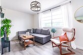 Feel at home in this centrally located 1-bedroom apartment in Columbus's Short North neighborhood. Located upstairs in a 4-unit building, this apartment requires climbing a stairway. This apartment is filled with rare plants and upscale decor. It features a fully equipped kitchen, high-speed internet, a 40" Smart TV with streaming apps, a white noise machine, a hairdryer, a handheld steamer, and a dryer. Pets are welcome for a fee of $40 per pet per night, up to $600 per pet for the entire stay. Off-street parking for one vehicle is available. Permit parking on the same street is available for $10 per additional vehicle for your entire stay. This apartment is a short walk from the Greater Columbus Convention Center, the Short North District, and the Nationwide Arena Stadium. Ohio State University campus and downtown Columbus are less than a mile away. You can easily walk around the Short North and Convention Center area, or take a quick ride to get around Columbus. Top-rated restaurants with unique character and amazing food are nearby. Some city or neighbor noise is possible due to the central downtown location and shared wall with a neighboring unit. Quiet hours are from 9 p.m. to 7 a.m., and loud music is not allowed at any time. No parties, small gatherings, or events are allowed. Smoking, marijuana, firearms, illegal substances, or any illegal activity are prohibited on the property; smoking is allowed outside only. No additional unregistered guests are allowed. Tampering with exterior surveillance, noise monitors, and smoke sensors will lead to immediate cancellation with no refund, as well as a $300 violation charge. Any late check-out will result in an additional charge of $100. Breaking any of the house rules will result in a charge of $500 each, subject to a charge per occasion and per broken rule separately. The original hardwood floors and staircases may not be suitable for children as it is not child-friendly. Registration Number: 20233389 [SI]