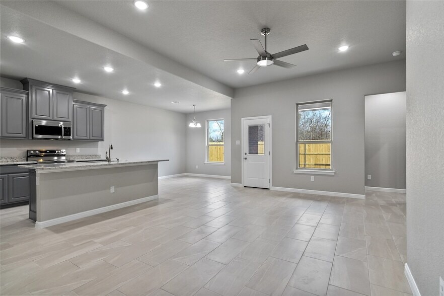 Discover your dream home in this beautifully designed brand new 3-bedroom, 2-bathroom single-family residence, complete with a spacious 2-car garage. Nestled in a serene neighborhood, this home features an inviting open floor plan, perfect for both relaxation and entertaining. Step into a large kitchen equipped with stainless steel appliances, a grand granite island, and ample cabinet space, along with a convenient pantry for all your storage needs. The generously sized rooms ensure comfort for the whole family, highlighted by a luxurious master suite that boasts a walk-in closet and a large master bathroom featuring a double vanity. Enjoy your private outdoor retreat in the fenced backyard, ideal for gatherings or quiet evenings. Located just minutes from the Chisolm Trail toll road, you'll have easy access to shopping, dining, and all the amenities you need. Don't miss the opportunity to make this modern gem your home. The landlord will pay utilities for April.