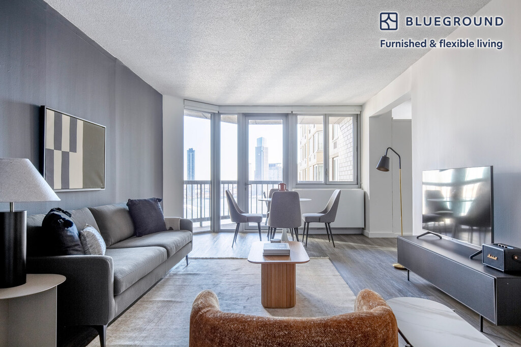 Show up and start living from day one in New York with this sophisticated three bedroom Blueground apartment. You’ll love coming home to this thoughtfully furnished, beautifully designed, and fully equipped Murray Hill home with stunning balcony views over the river. (ID #NYC943) The advertised rate of $8,310/month is the lowest available price, based on a 12 month(s) stay with a move-in date of February 17, 2026. Rates vary depending on the duration of stay, season, and other parameters. For exact pricing and additional pricing components, please visit our website and enter your desired move-in and move-out dates. The rate is applicable when billed upfront; it can be higher if billed in multiple payments. Brokers are welcome to reach out. Were you looking for an unfurnished lease? Try Blueground instead and upgrade from unfurnished to furnished living: - Furnished at rates comparable to unfurnished - No setup or furniture costs - save thousands - Move-in ready - save time, just bring your suitcase Designed with you in mind As with any Blueground apartment, you’ll find a thoughtfully designed space complete with beautiful furniture and a fully equipped kitchen in this three bedroom property. And, thanks to our superior quality mattresses, luxury linens, and towels, you can relax knowing you’ll always feel comfortably at home. When you’re ready for some fun, you can take in the New York vibes or bring the entertainment to you with the premium wireless speaker or smart TV. Sleeping arrangements King Bed, 70.8in/180cm King Bed, 70.8in/180cm Double Bed, 55in/140cm Amenities Building amenities unique to this three bedroom apartment include an on-site: - Doorman - Dryer in building - Elevator - Washing machine in building - Lounge - Media room - Pets allowed - Playroom Arrival and ongoing support The entire apartment is yours to enjoy! Throughout your stay, you’ll have access to our Client Experience team through the Blueground App. You can schedule additional cleanings, submit maintenance requests, and view our neighborhood recommendations with just a few taps. We’ll share all details upon confirmation of your stay. Ideally Located This furnished apartment is located in Murray Hill, a lively Midtown neighborhood. The active nightlife scene makes it increasingly ideal for youngsters and recent graduates. Simultaneously, families are relocating here as there are many good schools in close proximity. Murray Hill offers various destinations for culture-lovers. Namely, the New York Public Library and Bryant Park draw residents in from the rest of the city. Grand Central Station is only 5 minutes from Murray Hill by subway. Other things to note Building amenities may have an extra cost. This Blueground apartment has flexible lease options, allowing you to book it for one month, a year, or more. Pets are welcome, though weight limits and breed restrictions apply and may incur fees. Brokes CYOF. We take great pride in ensuring every photo displayed is shot in our own units with our actual furnishings. That said, we regularly refresh our decor and furniture arrangement, which may differ from what’s pictured.