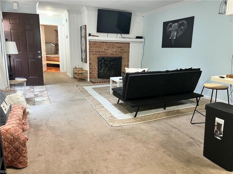 Cute furnished 2-bedroom, 2-bath second-floor condo with an open living area and cozy fireplace. Each bedroom has its own private bathroom, and one bedroom features a private balcony. Carpet in the main living space with LVP flooring in both bedrooms.Kitchen includes stove, microwave, refrigerator, dishwasher, plus washer and dryer. Enjoy a private fenced courtyard patio for outdoor space.Conveniently located near Dam Neck Base, and just minutes from the Virginia Beach Oceanfront, Ocean Breeze Waterpark, and Virginia Aquarium. Near to bases, restaurants, breweries, and shopping.One small pet allowed with $300 pet fee and $25/month pet rent. Income must equal 2.5x rent. First month s rent and security deposit (certified funds) due at lease signing. No smoking or vaping. Tenant must follow condo rules. Community pool available in summer.