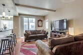 Feel at home in this 3-bedroom condominium located in the heart of the city, just 3.5 blocks from the convention center. Situated on the top floor, this apartment offers a perfect downtown Salt Lake City getaway. This stylish condo is decorated with all-new furnishings and decor, including granite countertops, hardwood floors, and high-end furniture. The living room opens onto a small balcony. Enjoy the smart television in the living room, ready for you to log into your favorite streaming services. All linens and towels are included. Enjoy free use of a hot tub, seasonal outdoor pool, 24-hour gym, convenience store, and coffee shop, all on the premises. One free covered parking space is included, and unlimited free street parking is available. Dogs are welcome with a $99 pet fee. One travel crib (pack n' play), one baby high-chair, one self-inflating deluxe twin bed kit, and one baby stroller can be provided free of charge upon request. Additional cribs, high-chairs, or beds can be provided for $25 per item per stay. Enjoy easy access to a variety of attractions, dining, and entertainment options within walking distance. Located on the edge of the Gateway District, you'll find vibrant nightlife, including comedy clubs, sports bars, dance clubs, and a Dave & Busters. The condo is in a gated community with 24-hour security guards. Note that it is a condo complex, so you might hear other people in the area. No cats are allowed. [SI]