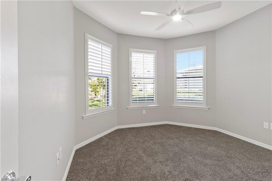 Available for a long-term annual lease, this unfurnished 2-bedroom + den, 2-bath single-family home is located in the highly desirable 55+ Del Webb Naples community in Ave Maria. The popular Abbeyville floor plan offers an open layout with lake and sunrise views.Recent updates include brand-new carpet, fresh interior paint, plantation shutters, and a retractable front door screen. Enjoy the extended screened lanai plus an outdoor patio overlooking the water. The primary suite features dual sinks and a walk-in shower, while the den provides flexible space for an office or guests. Laundry room includes washer/dryer and ample storage. 2-car garage with extra storage and extended driveway.Residents enjoy resort-style amenities including pools, fitness center, pickleball, tennis, bocce, clubhouse, restaurant, and optional golf at Panther Run. Gated, golf-cart-friendly community close to shopping, dining, and Publix. Pets with approval.