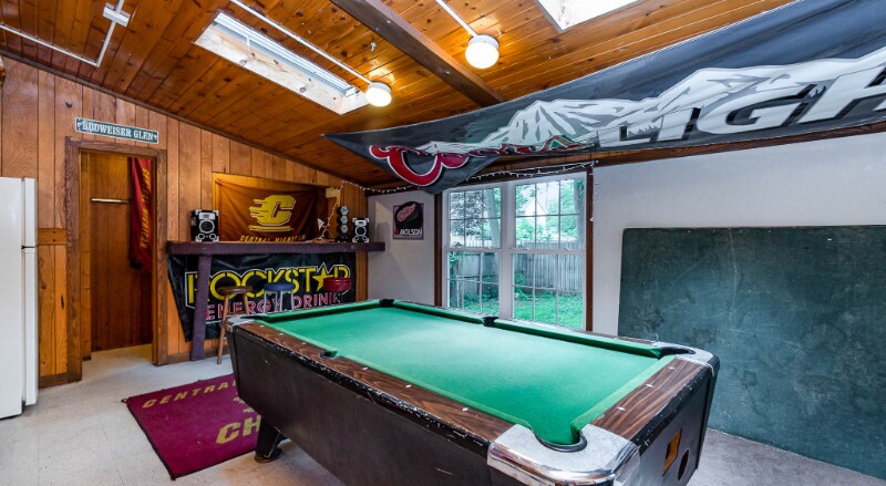 Property Id: 524014 Available fall 26/27 semester!! One of the very coolest Student or Family homes in Mt. Pleasant. The Emerald has 5 Bedrooms, 2 bathrooms, 2 Kitchens, 2 living rooms, Pool Room and walk behind bar with it's own refrigerator and Sound system !!! Outside there is a Huge wood deck with outside furniture and a fenced in back yard for your dogs to run free !!!! Less than a 10 minute walk to Campus and a 5 minute walk to downtown bars and restaurants. Tons of parking off the alley and also out front. This is truly a one-in-a-million house. Contact Ron for information or schedule a tour . Visit our website for more info at