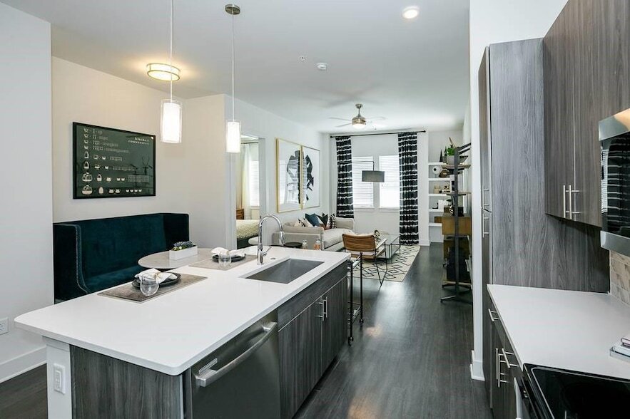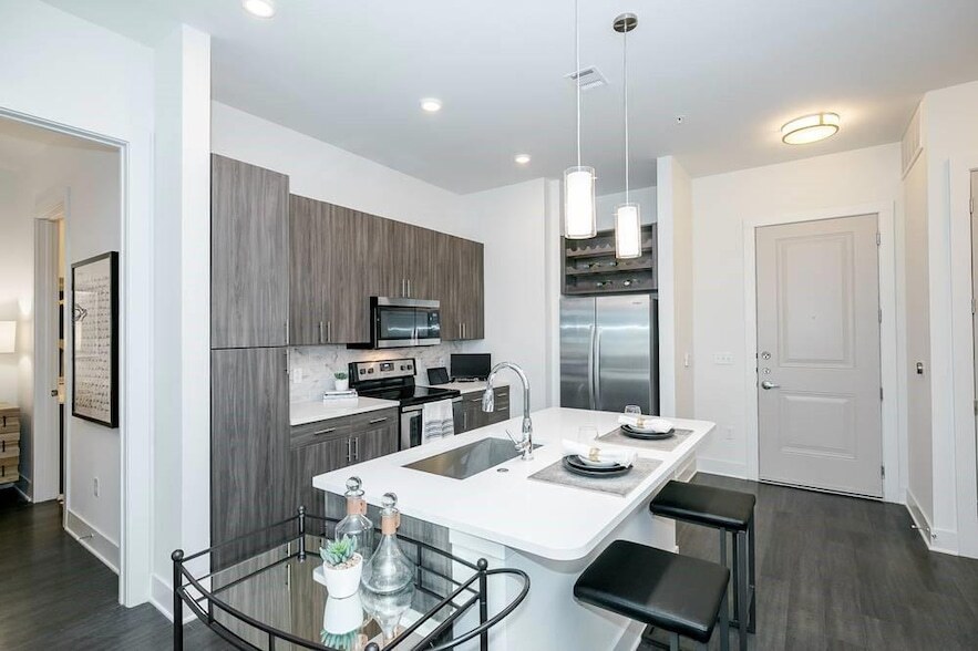 Located in Sandy Springs. Close to 400 & 285. High walk score and on-stie retail. Blocks to Kroger, Lowes, WholeFoods & more! Easy access to Roswell Rd, 400 & 285. All units are 9ft ceilings, 2 wood blinds, fans, smart thermostats & alarms. Gourmet kitchens with granite, stainless, wood cabinets & sleek hardware. Select homes have wood floors, walk-in showers with rain showerhead, soaking tubs, dual vanity, walk-in closets & patio/balcony. Rooftop amenities, Saltwater pool, cabanas, walk-in pool, 24/7 Package, 2 story fitness, on-site security, conference room & private offices, outdoor movie theater, pet spa, golf simulator & Storage units. Weekly resident evens (rooftop yoga, boxing, etc.) One time parking fee.