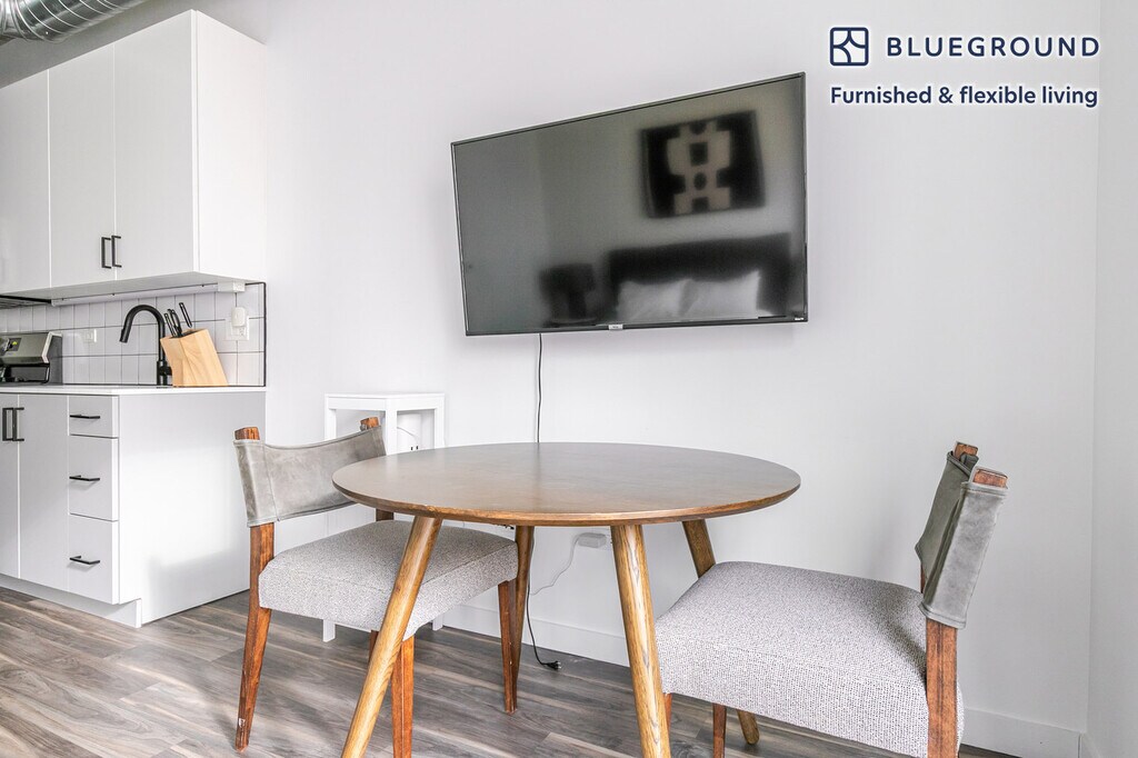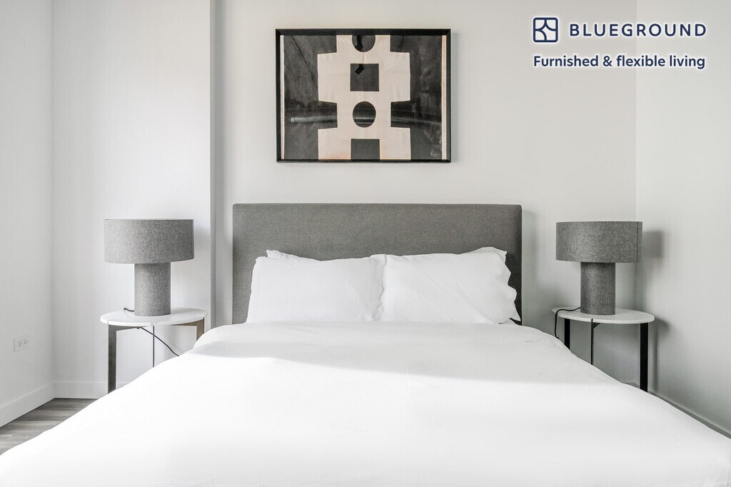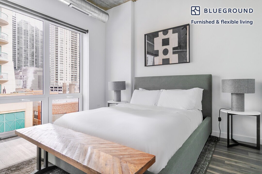Show up and start living from day one in Chicago with this spacious studio Blueground apartment. You’ll love coming home to this thoughtfully furnished, beautifully designed, and fully equipped Near North Side home. (ID #CHI1412) The advertised rate of $1,711/month is the lowest available price, based on a 1 month(s) and 29 day(s) stay with a move-in date of February 11, 2026. If you’re looking for a 1-year stay, the rate is $2,541/month. Rates vary depending on the duration of stay, season, and other parameters. For exact pricing and additional pricing components, please visit our website and enter your desired move-in and move-out dates. The rate is applicable when billed upfront; it can be higher if billed in multiple payments. Brokers are welcome to reach out. Were you looking for an unfurnished lease? Try Blueground instead and upgrade from unfurnished to furnished living: - Furnished at rates comparable to unfurnished - No setup or furniture costs - save thousands - Move-in ready - save time, just bring your suitcase Designed with you in mind As with any Blueground apartment, you’ll find a thoughtfully designed space complete with beautiful furniture and a fully equipped kitchen in this studio property. And, thanks to our superior quality mattresses, fully stocked linens, and towels, you can relax knowing you’ll always feel comfortably at home. When you’re ready for some fun, you can take in the Chicago vibes or bring the entertainment to you with the premium wireless speaker or smart TV. This apartment also offers in-apartment laundry. Sleeping arrangements Queen Bed, 63in/160cm Amenities Building amenities unique to this studio apartment include an on-site: - Dryer - Elevator - Washing machine Arrival and ongoing support The entire apartment is yours to enjoy! Throughout your stay, you’ll have access to our Client Experience team through the Blueground App. You can schedule additional cleanings, submit maintenance requests, and view our neighborhood recommendations with just a few taps. We’ll share all details upon confirmation of your stay. Ideally Located This furnished apartment is located in Chicago's Near North Side neighborhood. Part of the storied Miracle Mile, this thriving neighborhood set on the shore of Lake Michigan is home to some of the city's most notable skyscrapers. The Near North Side has a fabulous dining scene, with everything from Chicago-style pizza to casual pubs to five-star restaurants. Neighborhood highlights include the Museum of Contemporary Art and 360 Chicago, a skyscraper with an observation deck. There's also Navy Pier, a lakefront park with casual dining, dinner cruises and carnival rides. The Near North Side is served by the CTA's Brown, Red and Purple Lines, as well as several bus routes. Other things to note Building amenities may have an extra cost. This Blueground apartment has flexible lease options, allowing you to book it for one month, a year, or more. We take great pride in ensuring every photo displayed is shot in our own units with our actual furnishings. That said, we regularly refresh our decor and furniture arrangement, which may differ from what’s pictured. [SI]