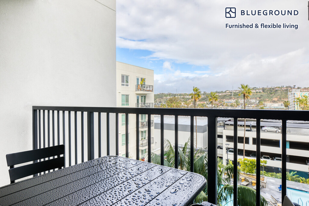 Feel at home wherever you choose to live with Blueground. You’ll love this stylish Mission Valley West furnished one bedroom apartment with its modern decor, fully equipped kitchen, and spacious living room. Ideally located, you’re close to all the best that San Diego has to offer! (ID #SAN12) The advertised rate of $2,910/month is the lowest available price, based on a 12 month(s) stay with a move-in date of May 1, 2026. Rates vary depending on the duration of stay, season, and other parameters. For exact pricing and additional pricing components, please visit our website and enter your desired move-in and move-out dates. The rate is applicable when billed upfront; it can be higher if billed in multiple payments. Brokers are welcome to reach out. Were you looking for an unfurnished lease? Try Blueground instead and upgrade from unfurnished to furnished living: - Furnished at rates comparable to unfurnished - No setup or furniture costs - save thousands - Move-in ready - save time, just bring your suitcase Designed with you in mind As with any Blueground apartment, you’ll find a thoughtfully designed space complete with beautiful furniture and a fully equipped kitchen in this one bedroom property. And, thanks to our superior quality mattresses, luxury linens, and towels, you can relax knowing you’ll always feel comfortably at home. When you’re ready for some fun, you can take in the San Diego vibes or bring the entertainment to you with the premium wireless speaker or smart TV. This apartment also offers in-apartment laundry. Sleeping arrangements King Bed, 70.8in/180cm Amenities Building amenities unique to this one bedroom apartment include an on-site: - BBQ Area - Dryer - Elevator - Swimming pool - Washing machine - Lounge - Parking - Pets allowed Arrival and ongoing support The entire apartment is yours to enjoy! Throughout your stay, you’ll have access to our Client Experience team through the Blueground App. You can schedule additional cleanings, submit maintenance requests, and view our neighborhood recommendations with just a few taps. We’ll share all details upon confirmation of your stay. Other things to note Building amenities may have an extra cost. This Blueground apartment has flexible lease options, allowing you to book it for one month, a year, or more. Pets are welcome, though weight limits and breed restrictions apply and may incur fees. Parking is offered based on availability and is subject to a fee. We take great pride in ensuring every photo displayed is shot in our own units with our actual furnishings. That said, we regularly refresh our decor and furniture arrangement, which may differ from what’s pictured. Also note - This apartment's central location means it can be noisy at times - On-street parking near the building is not allowed [SI]