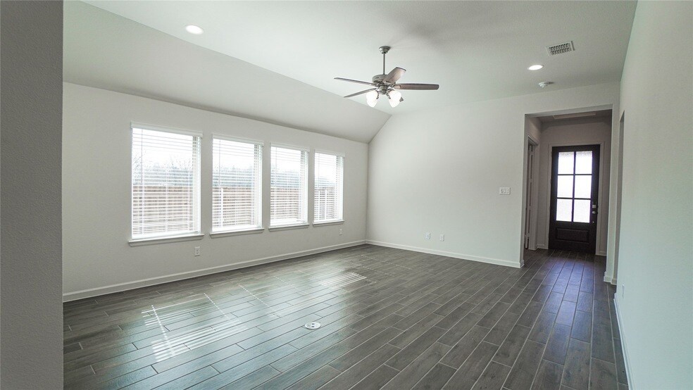 Welcome to this brand-new 2025 construction nestled in the desirable Avondale community of Fate, Texas. This thoughtfully designed single-story home offers nearly 2,000 square feet of modern living with an open, airy floorplan ideal for both everyday comfort and entertaining. A welcoming front porch leads into a bright entry with a private home office behind French doors, while the secondary bedrooms feature walk-in closets and share a stylish full bath. The heart of the home showcases a spacious living area filled with natural light, seamlessly connecting to the dining space and a chef-inspired kitchen complete with granite countertops, a large island with seating, built-in cabinetry, gas range, and a generous walk-in pantry. Tucked away at the rear for privacy, the primary suite offers a peaceful retreat with an ensuite bath featuring dual vanities, granite counters, a glass-enclosed shower, linen storage, and an oversized walk-in closet. Additional highlights include a convenient mudroom and utility room, energy-efficient features, smart home technology, a covered patio perfect for relaxing outdoors, and a rear-facing two-car garage with alley access. Located within Rockwall ISD and close to parks, sidewalks, and community amenities, this pristine new home delivers comfort, style, and convenience in a growing neighborhood.