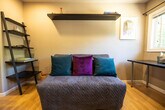 Forget your worries in this spacious and serene apartment, designed for comfort and relaxation. With three full bedrooms and a convertible bedroom/office, this home can accommodate up to seven guests, making it perfect for families or groups. Outfitted with all the essentials for an extended stay, this apartment features a full kitchen and dining area, central heating, cozy furnishings, and a washer and dryer. Enjoy home-cooked meals and make use of the crib and high chair to ensure the whole family stays comfortable. Sleep up to seven guests with three full bedrooms, a convertible bedroom/office, and an extra air mattress. Step out into a lush, two-tier backyard with a trimmed lawn leading down to a shaded garden lounge. Perfect for morning coffee or an easy evening wind-down, this serene outdoor space offers a comfy place to relax at any time of day. The convertible bedroom/office provides a flexible space for remote work, ensuring you can stay productive while enjoying the comforts of home.