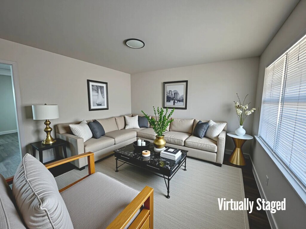 View 360 Virtual Tour: Move In Special: Free $250 Gift Card with a 1 year lease. The apartment boasts black appliances that add a touch of sophistication to the kitchen, while the white cabinets create a clean and contemporary feel. The new flooring throughout the apartment adds a fresh and inviting ambiance. Whether you are cooking a delicious meal or entertaining guests, this apartment provides the perfect backdrop for creating lasting memories. Don't miss out on this incredible opportunity to make this apartment your own. This unit accepts cats. Pet Rent is $25/month. $25.25 monthly fee for trash pickup. Disclaimer: The furnishings or enhancements shown are AI-generated and intended for inspiration only. They may not reflect the actual scale, condition, or current features of the property.