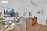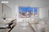 This one-of-a-kind southeast-facing corner one-bedroom, one-and-a-half-bath residence spans approximately 868 square feet and offers refined elegance, abundant natural light, and contemporary sophistication. The coveted A-line layout is bathed in sunlight through oversized corner windows, complemented by wide-plank white oak flooring and a serene neutral palette. A discreet powder room near the entryway provides added convenience and privacy for guests while entertaining.The open-concept chef's kitchen is a showcase of modern craftsmanship and luxury, featuring top-of-the-line Gaggenau appliances, including a stainless steel refrigerator, freezer, gas range, speed oven, and dishwasher. Custom Italian walnut cabinetry is paired with honed Grigio Nicola marble countertops and a matching slab backsplash, offering a striking yet understated finish.The spacious primary suite provides a tranquil retreat with a dedicated dressing area and a beautifully appointed three-fixture en-suite bath. Luxurious details include radiant heated floors, honed Tundra Gray marble surfaces, and bespoke lighting by Gabellini Sheppard. The residence also includes a washer and dryer for ultimate convenience.611 West 56th Street offers an exclusive selection of thoughtfully curated amenities designed to enhance every aspect of daily living. Residents enjoy access to a landscaped outdoor garden mezzanine, a fully equipped fitness center with a yoga and training studio, steam room and changing rooms, a screening and media lounge with billiards, a children's playroom, and an elegantly designed resident lounge complete with a formal dining area, catering kitchen, and entertaining space.Ideally located at the crossroads of Hudson Yards, the Upper West Side, and Midtown West, 611 West 56th Street offers the perfect blend of privacy, convenience, and design sophistication in one of Manhattan's most dynamic neighborhoods.Application Processing Fee 750.00Digital Document Retention Fee 112.50Move In Deposit 1000.00Consumer Report Fee 80.00Move Out Deposit 1000.00First Month: 6,000Security Deposit: 6,000