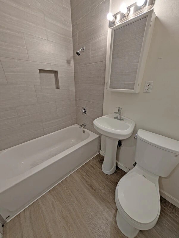 Unit Description: Upper Level 1 Bed and 1 Bath Apartment with Laminate Hardwood Throughout. Quartz Countertops in the Bathroom and Kitchen with Subway Tiled Backsplash and Recessed Lighting. Stainless Steel Appliances Included: Refrigerator, Gas Stove, Dishwasher and Microwave. Ceiling fan in the Bedroom with a Large Closet. Living Room with Plenty of Natural Light. Wall AC Unit in the Living Room. Bathroom with Bathtub with Shower Rod. Apartment off of Santa Monica Blvd and Vine St with close access to the 101. These newly renovated Hollywood units feature the best of modern design. These units are conveniently located near Vons, Pavilions, Target, happening restaurants and bars, artistic outlets, and more! Controlled Access property. Tenant Pays All Utilities - Including Prorated Share of Water and Trash (Rubs). 1 Parking Spot. IT491023 - IT49st6142EleanorAve