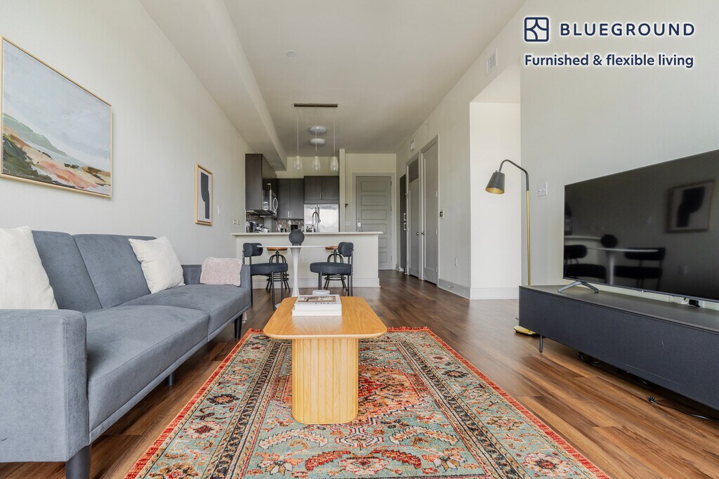 Discover the best of Austin, with this one bedroom apartment in Downtown Austin. It’ll be easy to simply show up and start living in this elegantly furnished apartment with its fully equipped kitchen, spacious living room, and our dedicated, on-the-ground support. (ID #ATX328) The advertised rate of $2,340/month is the lowest available price, based on a 7 month(s) and 2 day(s) stay with a move-in date of March 1, 2026. If you’re looking for a 1-year stay, the rate is $2,390/month. Rates vary depending on the duration of stay, season, and other parameters. For exact pricing and additional pricing components, please visit our website and enter your desired move-in and move-out dates. The rate is applicable when billed upfront; it can be higher if billed in multiple payments. Brokers are welcome to reach out. Were you looking for an unfurnished lease? Try Blueground instead and upgrade from unfurnished to furnished living: - Furnished at rates comparable to unfurnished - No setup or furniture costs - save thousands - Move-in ready - save time, just bring your suitcase Designed with you in mind Thoughtfully designed with bespoke finishes, modern furnishings, and a fully equipped kitchen, you’ll enjoy that “I’m home” feeling with this Blueground apartment. Whether you’re lounging in your beautiful living room streaming the latest and greatest entertainment on the smart TV or premium wireless speaker, or getting some well-earned rest on the superior quality mattress with luxury linens, you’ll fall in love with everything this Downtown Austin apartment has to offer. This apartment also offers in-apartment laundry. Sleeping arrangements Queen Bed, 63in/160cm Amenities Building amenities unique to this one bedroom apartment include an on-site: - Doorman - Dryer - Elevator - Swimming pool - Washing machine - Lounge - Parking - Pets allowed - Rooftop BBQ Arrival and ongoing support The entire apartment is yours to enjoy! Throughout your stay, you’ll have access to our Client Experience team through the Blueground App. You can schedule additional cleanings, submit maintenance requests, and view our neighborhood recommendations with just a few taps. We’ll share all details upon confirmation of your stay. Other things to note Building amenities may have an extra cost. This Blueground apartment has flexible lease options, allowing you to book it for one month, a year, or more. Pets are welcome, though weight limits and breed restrictions apply and may incur fees. Parking is offered based on availability and is subject to a fee. We take great pride in ensuring every photo displayed is shot in our own units with our actual furnishings. That said, we regularly refresh our decor and furniture arrangement, which may differ from what’s pictured. Also note - Noise from the nearby nightlife can sometimes be heard late at night [SI]