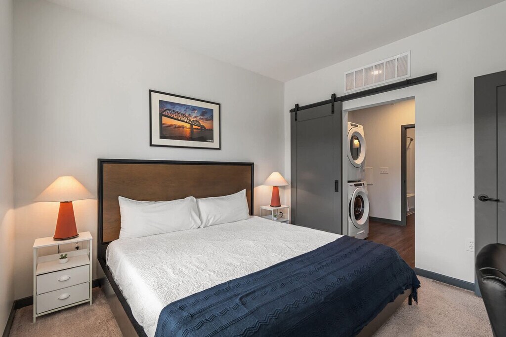 Designed with the modern traveler in mind, this apartment offers contactless check-in, smart features, and thoughtful details that make you feel right at home. Located in the lively Broad Ripple and Glendale neighborhoods, you’ll be steps away from shopping, dining, and local favorites. Enjoy complete privacy in the space, with our team available 24/7 by text, email, or phone to ensure your stay is seamless. This spacious 1-bedroom apartment features inviting living areas, a fully equipped kitchen, and a bathroom complete with toiletries. Throughout your stay, enjoy access to the building's fitness center and working lounge. You can also enjoy an in-unit washer and dryer for free, a smart TV with streaming apps installed, a TV in the living room, and complimentary coffee. While designs are based on the representative photos, each unit has individualized elements of design and custom decorative features. Max 2 pets with a combined weight of 40 lbs are allowed, excluding Pit Bulls and Bull Mastiffs. An additional pet fee ranging from $100 to $300 is based on the length of stay and is collected separately. All pets must be on a leash when outside on the property. Optional services like mid-stay cleanings and early check-in/late checkout are available for an additional fee. Enjoy the buzz of Glendale Town Center, a vibrant hub filled with shopping, dining, and entertainment. With everything at your doorstep and downtown just minutes away, it’s the perfect blend of fun and convenience. Smoking is not permitted within or outside of the apartment, including balconies, patios, or common and parking areas. Any sign of smoking is a violation of the stay agreement, which may result in immediate termination and recovery fees beginning at $500. Check-in is at 4 PM and check-out is at 11 AM, with a $75 per hour late fee. A $200 penalty applies for removing smoke detectors and another $200 penalty for lost key fobs. No outside guests are allowed without permission. One towel is provided per guest per stay. A valid photo ID is required to complete the booking. Guests must agree to not disturb neighbors at all times during the stay and observe quiet hours from 9 PM to 8 AM each day. The apartment is proactively monitored with decibel sensors for compliance with this noise policy. Long-term stays of 30 days or more are subject to a background search and credit check. No weapons or drugs are allowed, with zero tolerance meaning police will be called for violations. The unit is equipped with a smart lock, so you can check in and out with ease using a personalized access code. You’ll receive your code before arrival for hassle-free and secure entry, anytime after check-in time.