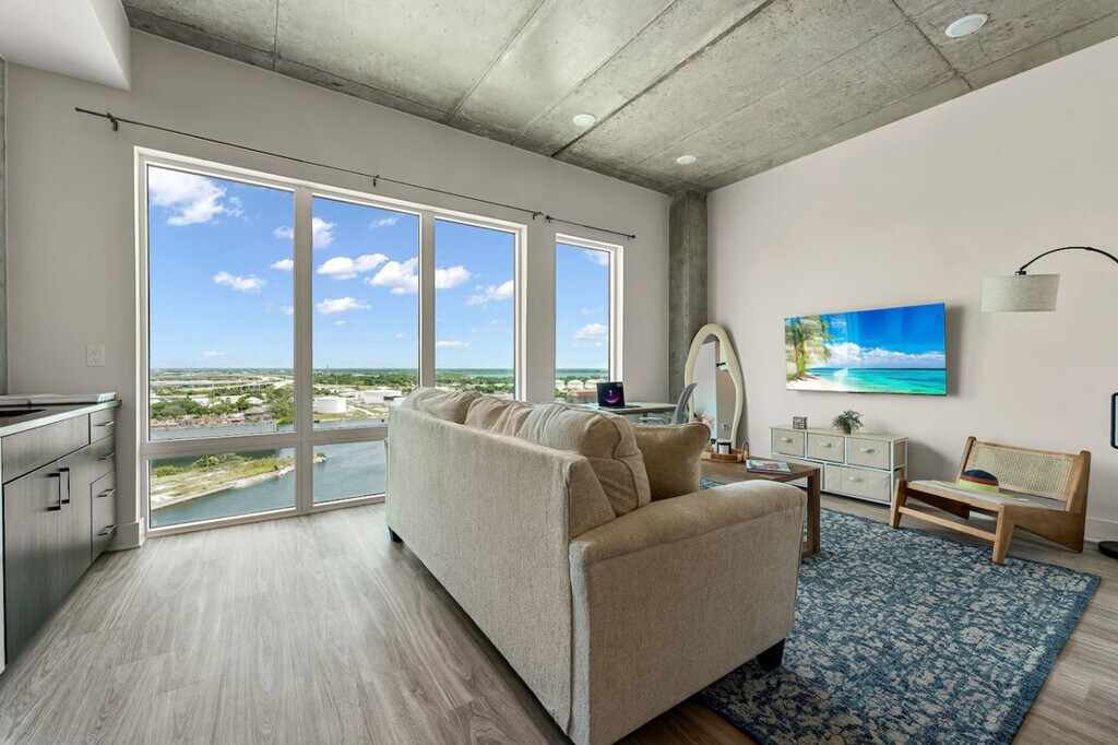Discover your perfect blend of work and play at this newly introduced luxury apartment, nestled in the pulsating heart of Tampa's Channelside district. Designed with the discerning traveler in mind, this sophisticated living space offers a serene retreat from the bustling city life, making it an ideal choice for professionals seeking a temporary residence while in town for work. Step into a haven of elegance and comfort in this modern apartment, where every detail is crafted to enhance your living experience. Featuring spacious living areas, state-of-the-art amenities, and a fully equipped kitchen, it's tailored to meet the needs of those who value both efficiency and style. High-speed internet and a dedicated workspace ensure you stay productive, while the plush bedding promises restful nights. Pets are welcome with a $45 fee per pet. Early check-in and late check-out are available for a fee of $25 or $50, subject to availability and host approval. Please inquire about the amenity status before booking as amenities outside of the apartment are managed by the building and are subject to maintenance. Strategically located in the vibrant Channelside area, this apartment puts you in close proximity to Tampa’s dynamic downtown, a plethora of entertainment options, and iconic stadiums. Whether you're looking to explore the city's rich cultural tapestry or simply enjoy the convenience of having top-tier dining and shopping venues within walking distance, this location serves as the perfect base. Noise detectors are located in the apartment and monitor noise levels. Surveillance cameras monitor common areas. A smartphone is required for building access as the locks work through a smartphone application. Smoking will result in a $500 fine. Absolutely no parties allowed, with violations resulting in a $1,000 fine and immediate eviction with no refund. Noise curfew is from 10 PM to 7 AM on weekdays and 10 PM to 8 AM on weekends, with penalties for violation. Guests must be 21+ to book a reservation. No entry for unregistered guests or those not on the reservation. Our goal is to maintain the peaceful residential environment of the building.
