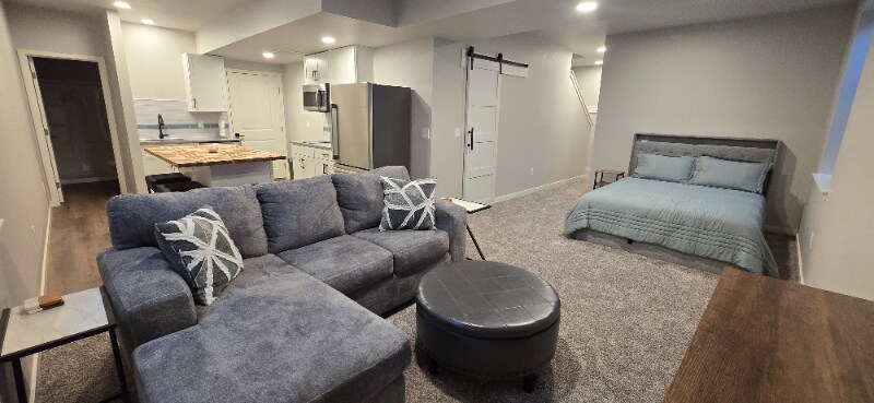 Property Id: 2148831 My husband & I are renting out our private 645 SF basement. Shared entrance. About us: We have 1 friendly dog; must be ok with dogs. We work standard M-F jobs. We are quite & easy going. Safe and quiet neighborhood. Property Details: Street Parking Only, LR, Kitchen (w/ cookware), Laundry Room (W&D), Bedroom (Storage Queen Bed), W/I Closet, Bathroom *Mech room is shared with your laundry room, we will need occasional access for Maintenace. Kitchen appliances (all brand new): DW, cooktop, microwave, toaster oven (with multiple features), & fridge. Large outdoor spaces to share include: front & back patio, & firepit area. All utilities included. Roku TV on site, but must use your own Netflix, Disney+, etc. Whole house central system is set year round; we've included an electric fireplace with multiple settings. Carpet & LVP flooring. Windows have blinds. Out of description room, additional details upon request.