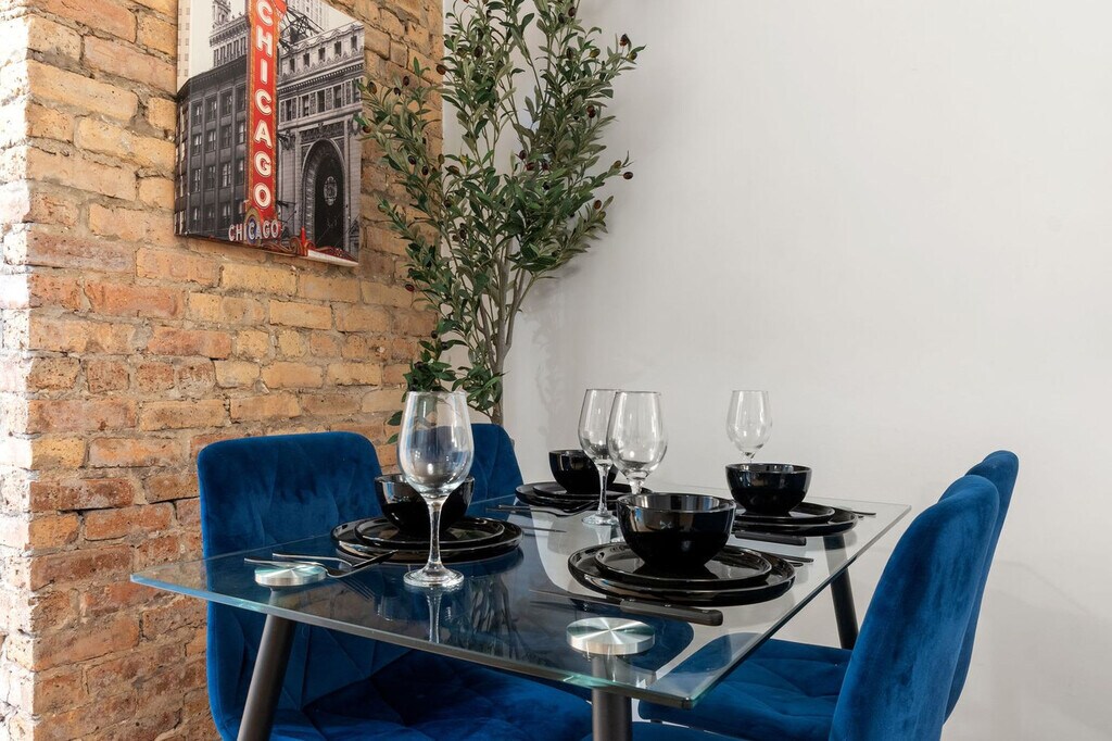 Welcome to your bright and modern getaway in the heart of Lakeview. Feel at home in this spacious 3-bedroom, 2-bath apartment that sleeps six comfortably. This apartment features a cozy living room with a smart TV and dining table. For your convenience, in-unit laundry facilities are available. The two full baths are clean and modern and are equipped with full tubs/showers. Fresh towels and bath essentials are provided. A shared patio area is available for relaxing outdoors. Just a short walk from Wrigley Field, you’re perfectly located to catch a Cubs game and moments from the lakefront’s relaxing paths and vibrant neighborhood restaurants. The neighborhood is a lively and walkable North Side community known for its vibrant mix of restaurants, bars, shops, and entertainment. The area has an energetic, social vibe with nearby festivals, theaters, and nightlife, plus easy access to public transit. Residents enjoy being close to major attractions like Wrigley Field while still having everyday conveniences like grocery stores, cafés, and neighborhood hangouts just steps away. The closest “L” (train) stop is Addison Station on the Red Line, about 0.4 miles away (roughly an 8-minute walk). You also have access to other nearby CTA “L” stations: Sheridan (Red Line) ~0.7 miles away. For buses, CTA routes 152 (Addison) and 22 (Clark) run nearby. Check-in time is 4:00 PM, and check-out time is 11:00 AM. No parties or events are allowed, and there is a $1,000 fine for violations. Smoking is prohibited inside the apartment, and there is a $500 fine for violations. Tampering with noise monitors or cameras is prohibited, and there is a $500 fine for violations. Quiet hours are between 10:00 PM and 8:00 AM. Guests are liable for any damage to the property. Please report any damages noticed at check-in. Registration Number: R2 [SI]