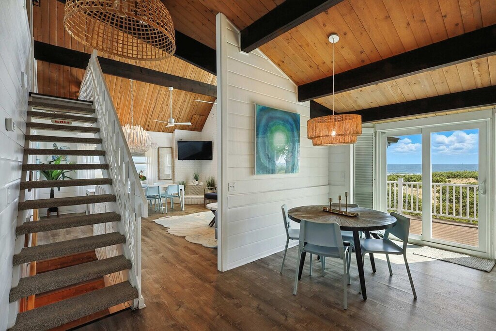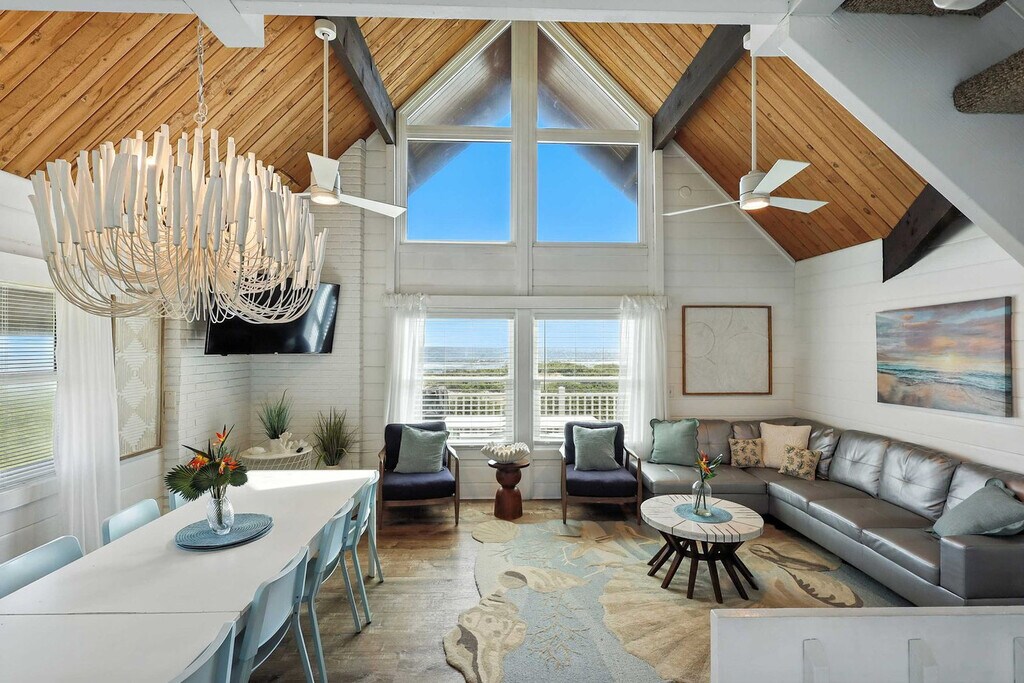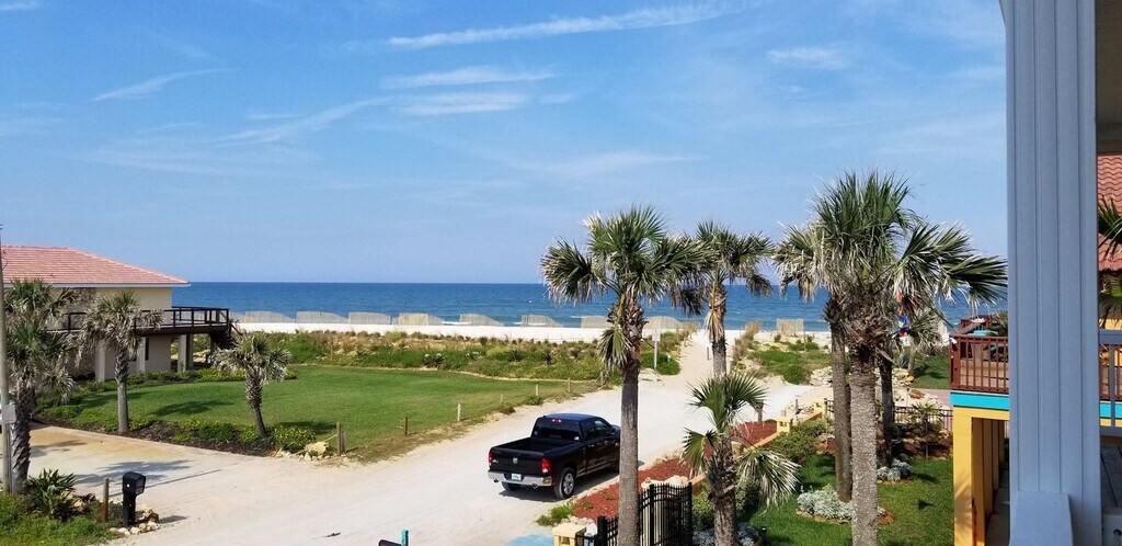 Welcome to this stunning three-story oceanfront home in Palm Coast, offering breathtaking ocean views from every room. Ideal for larger families, this home features multiple gathering spaces both inside and out, and a fully equipped kitchen with ocean views. Enjoy almost private coquina-sand beach access, as there is no public parking nearby, making it a serene retreat. This professionally decorated home in cool blue and white tones exudes an elegant and comfortable coastal vibe. The abundance of windows in the living area offers panoramic ocean views, perfect for spotting dolphins and migrating Right Whales. The first-floor suite includes a king-sized bed, bathroom, and mini kitchen. Bedroom two features a twin and twin trundle with a bathroom, while the second floor boasts a primary bedroom with a king-sized bed and bathroom, and additional bedrooms with queen and king-sized beds sharing a bathroom. The third-floor loft offers a queen-sized bed. The spacious living area includes large-screen smart TVs, and the main living/dining room combo seats over ten guests. Enjoy the bright, fully equipped kitchen with direct ocean views and options for dining inside or on the oceanfront deck. We welcome furry friends for a fee of $100 per pet. Please inform us in advance, and we’ll include them in your reservation. Discover the serene beauty of Marineland, a family-friendly beachfront neighborhood. With streets that lead directly to the beach and no through traffic, it offers a peaceful atmosphere. Enjoy the tranquility of a beach with no public parking, ensuring a quiet and uncrowded experience. Relax and unwind in this idyllic coastal haven, where you can truly escape from the hustle and bustle of daily life. Quiet hours are between 23:00 and 7:00. Do not climb over the dune at the back of the property; access the beach through the street walkover. After reserving your stay, a rental agreement will be sent to you for signing to confirm your stay and receive check-in instructions. Registration Number: 28--9 [SI]