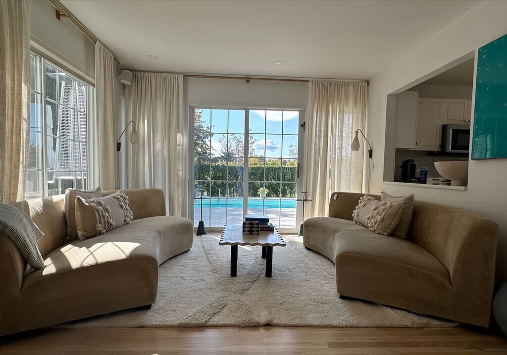 Welcome to Sea Farm, a newly updated Hamptons retreat adorned with designer furniture, perfect for peaceful relaxation and serenity by the pool. This luxurious home offers ample space to host family and friends, and is conveniently located within 10 minutes of all major destinations the Hamptons has to offer. Bordering a delightful nursery with expansive views, Sea Farm features beautifully maintained grounds and easy access to two har-tru and one all-weather tennis court. Step into the double-height foyer and living rooms, accompanied by a full library and office. The open, expansive layout flows seamlessly into the chef's kitchen and dining area. Multiple access points lead to the west-facing, sun-drenched outdoor deck and pool, offering various areas for lounging, tanning, dining, and relaxing. A grill and bar enhance the indoor/outdoor entertaining set-up, with stunning views over the Hampton Yards Nursery. The second floor features a primary bedroom with an en-suite bath and jacuzzi, overlooking the nursery and offering daily sunset views. Two guest rooms, one with a king-size bed and one with a queen-size bed, and a windowed bath complete the upstairs. The lower level provides additional accommodations, a media and meditation room, a workout space, and a second office. A 24/7 concierge is available for any request. The Sea Farm community is nestled next to the award-winning Hampton Yards nursery in the heart of the Hamptons. With less than 3 minutes to downtown Bridgehampton, 5 minutes to Sag Harbor, and 10-15 minutes to both South and East Hampton, this location offers a peaceful yet central setting. Uber and taxi services are available, and the Jitney and train station are about 5 minutes from the residence. Includes a full library and office on the main floor and a second office on the lower level, providing ample space for remote work. [SI]