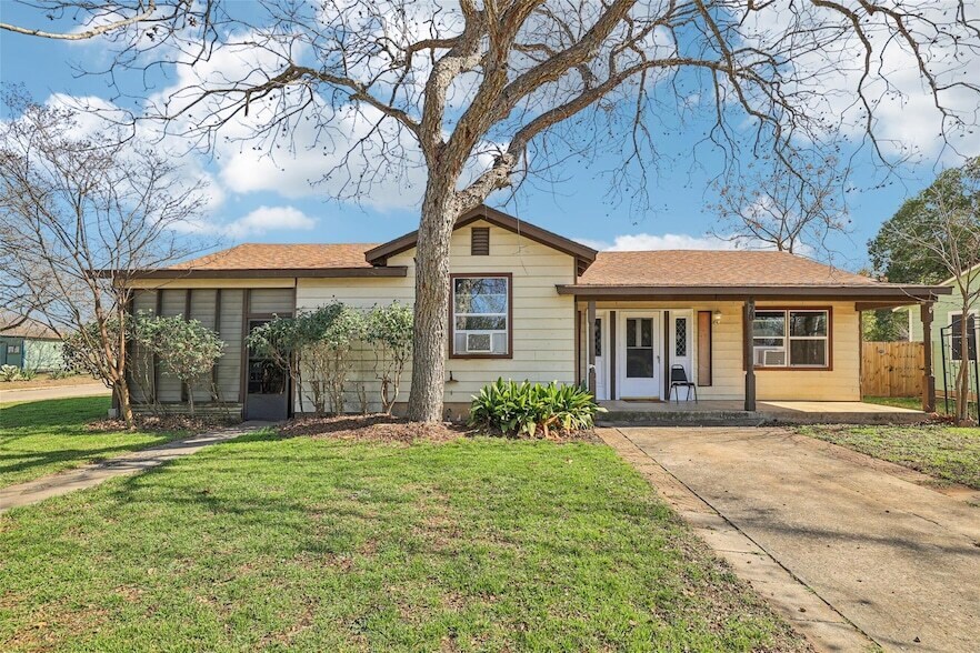 Nestled on a spacious corner lot shaded by mature trees, this charming mid-century gem at 620 Barbara Drive offers a seamless blend of vintage character and modern comfort in the heart of San Marcos. The inviting interior features three serene bedrooms, one and a half well-appointed baths, and original hardwood floors that flow through the spacious living and dining areas. You ll find refined touches in the kitchen, including stainless appliances, while updates like a newer roof and ceiling fans provide functional peace of mind. Outdoor living is a breeze with a classic covered front porch, a private patio, and a large, partially fenced backyard featuring a detached storage building for extra projects or gear. Perfectly situated in a tranquil, established neighborhood, this home provides quick access to I-35 and is just minutes from the river and 2.5 miles from Texas State University offering an ideal, central retreat for your next chapter.