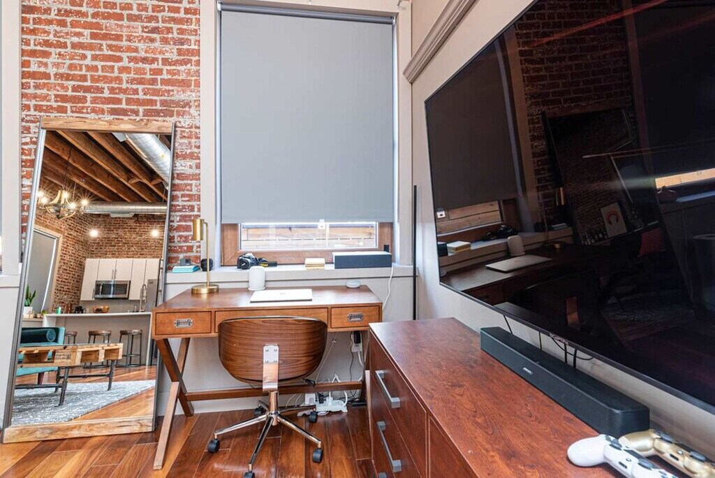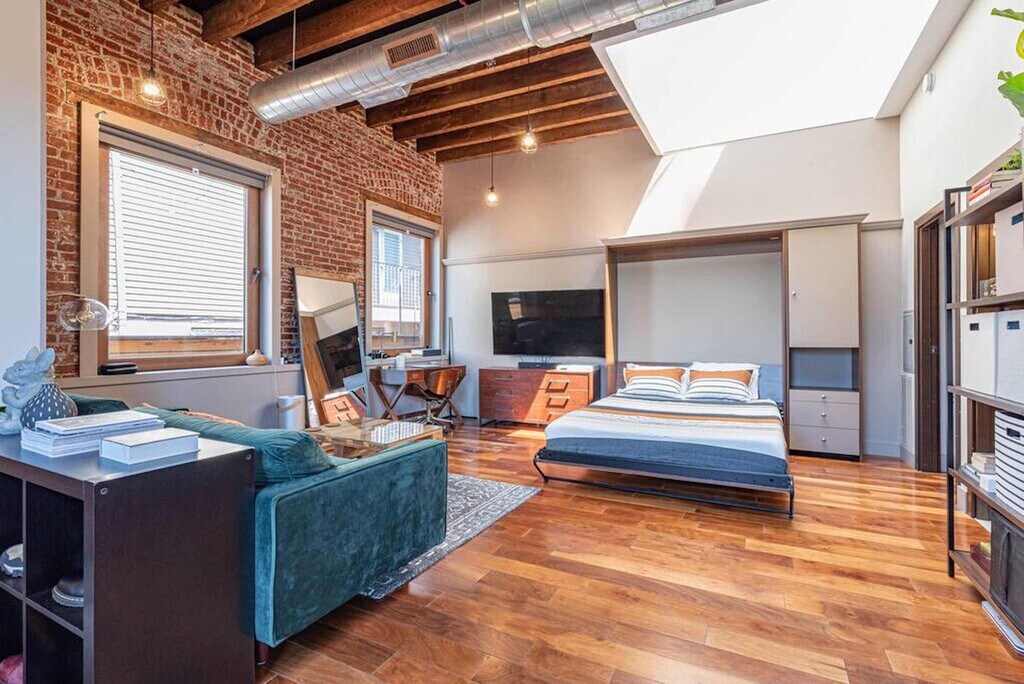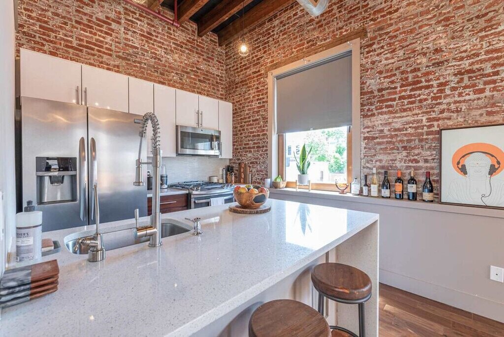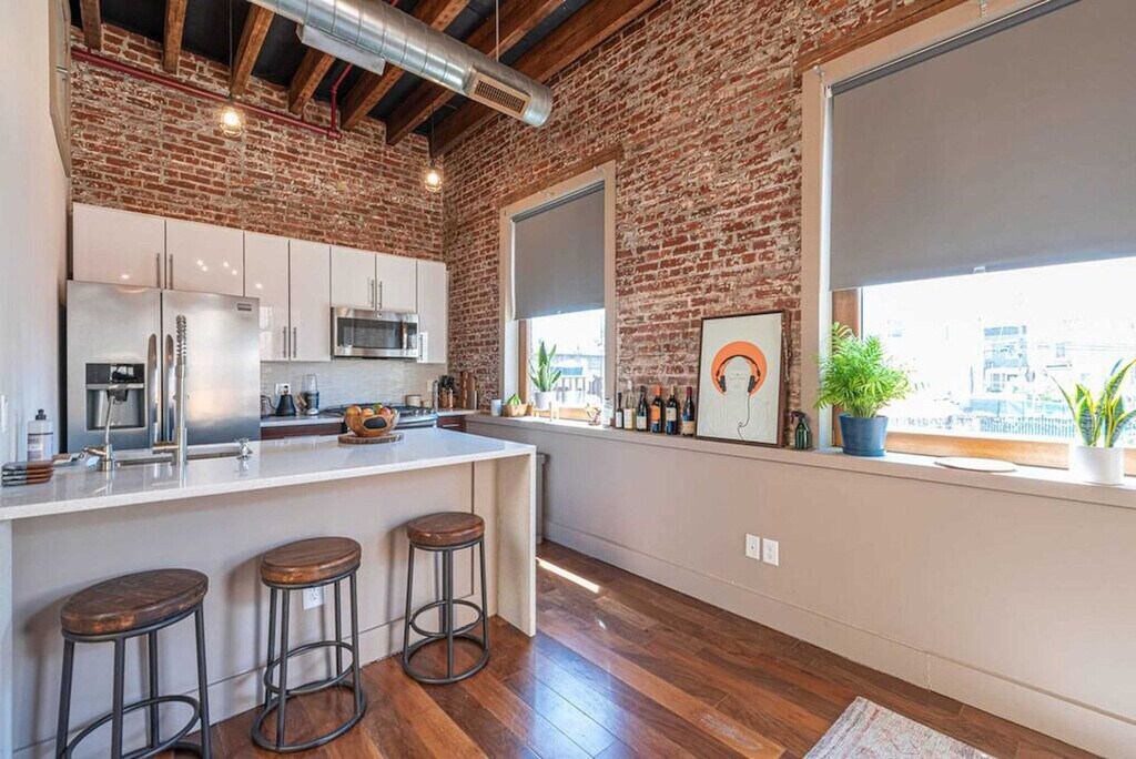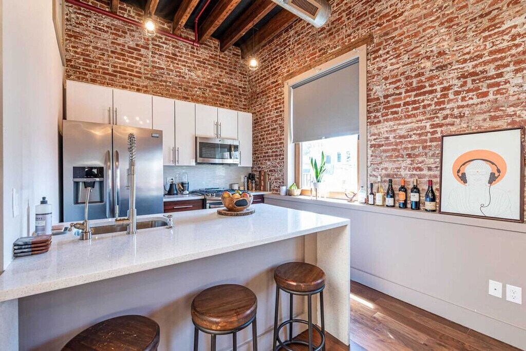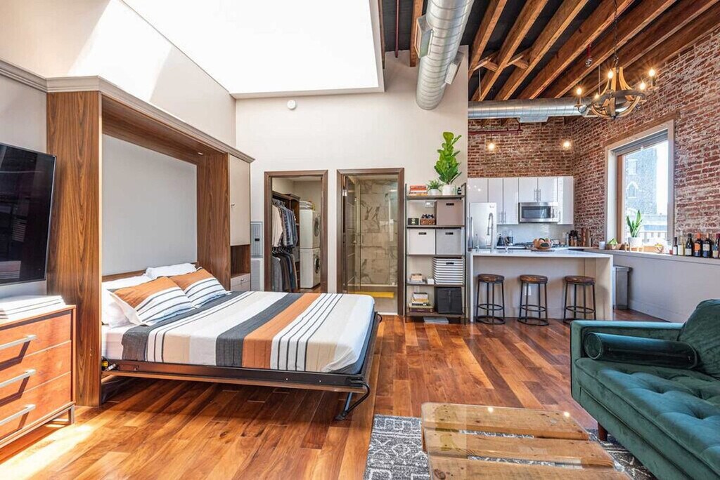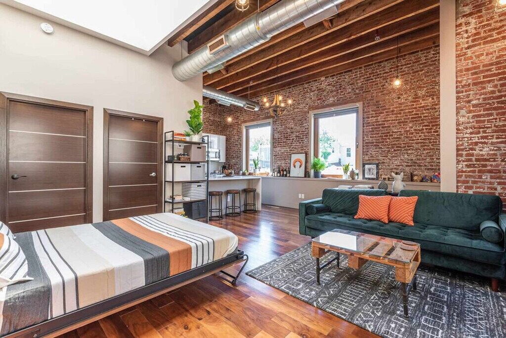 Experience the charm of a SOHO-style loft with this exquisite property, designed for the discerning cosmopolitan client. This apartment features an open living room with soaring 16-foot ceilings, exposed wood beams, and exposed brick walls. The oversized skylight bathes the space in natural light, while the custom European kitchen boasts stainless steel appliances and a quartz countertop. Ideally located just four minutes from Jersey City, seven minutes from Hoboken, and approximately 15 minutes from NYC, this apartment offers unparalleled convenience. Metlife Stadium is a mere 14 minutes away, Newark Airport is 20 minutes away, and the Nickelodeon Universe Theme Park is just 15 minutes away. Parking can be challenging to find during late evening hours, but there is always parking available on Paterson Plank RD, about a 5-7 minute walk from the apartment. Nestled between two beautifully historical churches, this apartment is situated on a very quiet street yet remains close to vibrant bars and restaurants. Union City, known as the "Embroidery Capital of the United States" and "Little Havana on the Hudson," offers a rich history influenced by German and Spanish immigrants. Visitors can enjoy the nation's longest-running passion play and the annual Cuban Day Parade of New Jersey. The apartment is equipped with 24/7 security cameras throughout the external perimeter and a decibel monitoring device in the living room. Quiet hours are from 9 PM to 10 AM, and noise should be kept to a minimum as the walls are thin. Non-registered guests and visitors are strictly prohibited, and parties or gatherings are not allowed. A $1,000 fine may be imposed for violations, including blocking security cameras or misplacing the parking permit. Check-out is at 10 AM sharp, with a $200 late fee for delays. Please wash dishes before check-out, and ensure the washer and dryer are turned off after use.