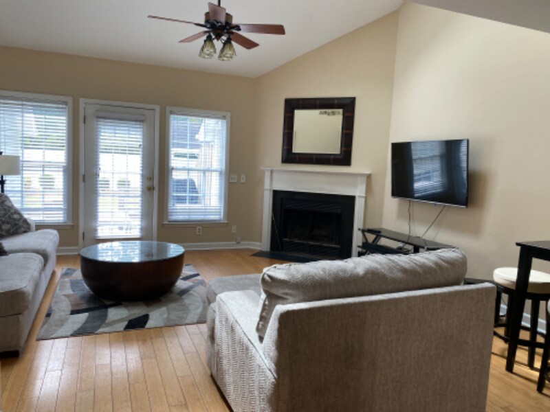 Property Id: 807000 Convenient location, this furnished townhouse is minutes from the beach and from UNCW. Designated parking just steps from house. Two bedrooms, two bathrooms, complete kitchen, great room with 16 ft. vaulted ceiling, in unit washer and dryer, back deck. This is an ideal townhouse for individuals traveling for work, ie travel nurses or individuals relocating to Wilmington.