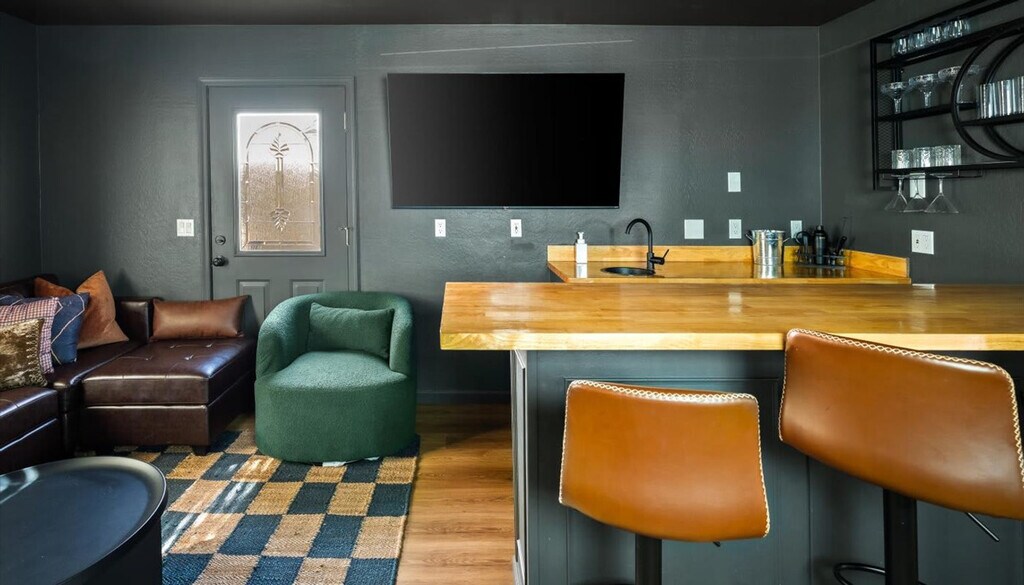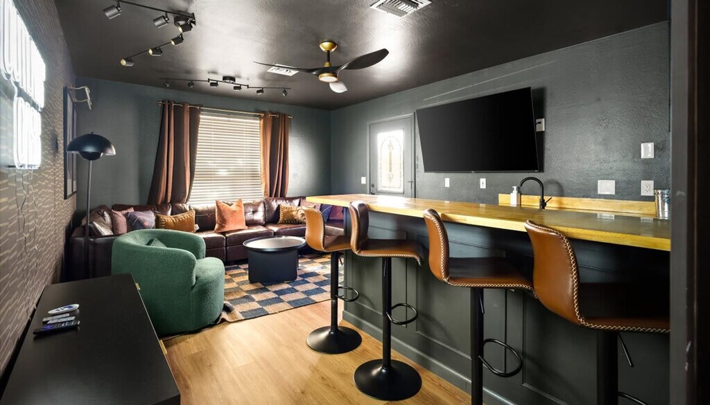 The advertised rate of $8,506/month is the lowest available price, based on a 1 month(s) stay with a move-in date of June 29, 2026. Rates vary depending on the duration of stay, season, and other parameters. For exact pricing and additional pricing components, please visit our website and enter your desired move-in and move-out dates. The rate is applicable when billed upfront; it can be higher if billed in multiple payments. Feel at home in this 6-bedroom home in a quiet neighborhood in Glendale, Arizona. This spacious retreat comfortably accommodates up to 20 guests. This luxurious home boasts a stunning backyard oasis with resort-style amenities and games for endless entertainment. The chef’s kitchen is fully stocked with high-end stainless appliances, tons of cabinetry, a large island, and a Keurig and drip coffee maker. The living room features a 65" smart TV, a large leathered sofa, ample plush seating, and a center/coffee table, with an open floor concept directing to the kitchen and dining area. Enjoy the private pool, hot tub, basketball court, fire pit, BBQ grill, putt putt, corn hole, giant connect 4, and poolside loungers with umbrellas. There are TVs in each bedroom, and family-friendly amenities include a pack n play and high chair. The home also features a hidden bookshelf that leads to a speakeasy, a custom bunk and playroom with a slide and foam pit, and monkey bars and a climbing wall. Conveniently located near top attractions, shopping, and dining, this home is the perfect getaway for both relaxation and adventure, offering something special for everyone. Uber and Lyft offer dependable transportation services. Absolutely no parties are allowed. Quiet hours are between 10 pm and 7 am. There is one security camera located at the front door. Parking is available in the driveway for a maximum of 4 cars. Street parking is allowed. Bedroom 1 includes a dedicated workspace and sleek vanity area. Registration Number: TPT#21574388 [SI]