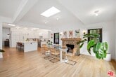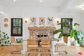 This beautifully reimagined Spanish effortlessly fuses timeless charm, classic architecture, and elevated modern living. With a 3 bed, 3 bath main house + a converted garage with a full bath, this character-rich home delivers everything from soaring skylights to abundant natural light, vintage stained-glass windows and an airy open layout. At the heart of the home sits a spacious cook's kitchen, thoughtfully designed for both form and function. It features a large center island, Carrara marble countertops, handcrafted tile, and sleek custom cabinetry ideal for casual dining or upscale dinner parties. The primary suite offers a peaceful haven and is fit with a walk-in closet, a spa-like en-suite bath, and bi-folding doors showcasing calming views and access to the manicured backyard and pool. A private and lush backyard invites seamless indoor-outdoor living, equipped with a grassy sitting area, patio and pool. The bonus converted detached garage provides its own functional living space, a bedroom and full bathroom, adding incredible flexibility perfect as a guest suite, creative studio, or the ultimate poolside lounge. Tucked away on a quiet street just moments from the best of Melrose and Beverly, this one hits every note: timeless, stylish, and completely dialed in.