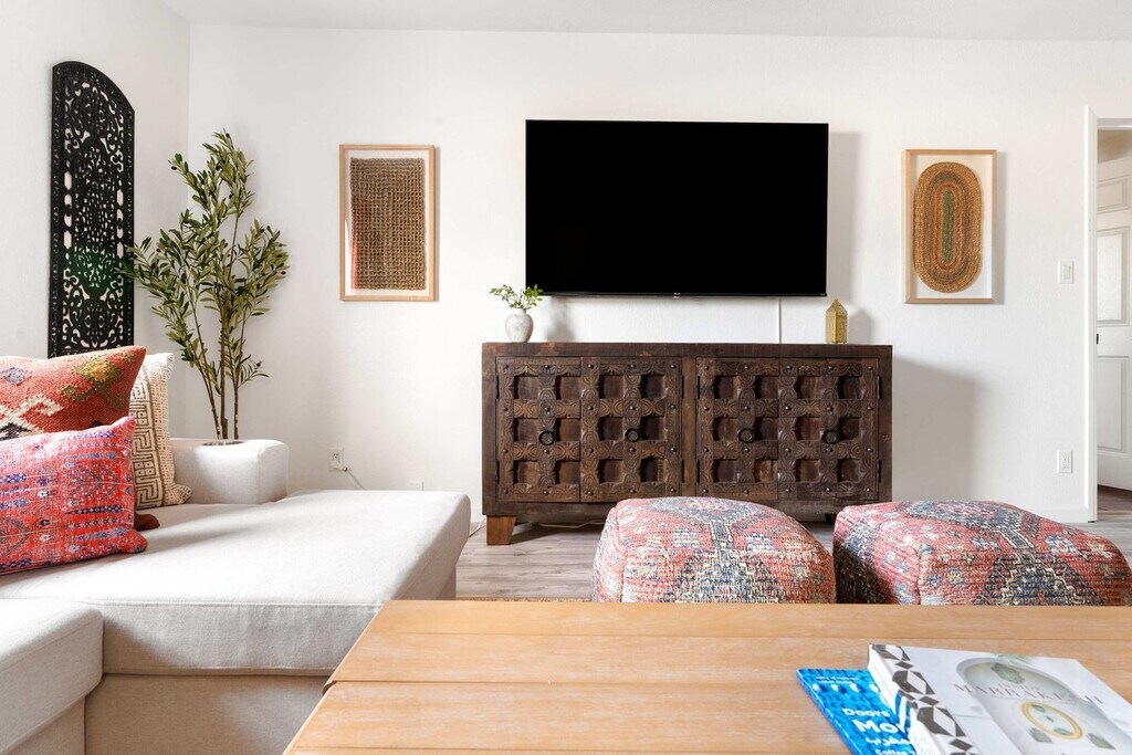This 8-bedroom home in Scottsdale, AZ is a haven for vacationers seeking both relaxation and adventure. With a private heated pool, hot tub, and a sports court for basketball and pickleball, this property offers endless entertainment options. The home also features a kid's playground, a movie theater, and an in-home gym, ensuring that every guest feels at home. The spacious layout includes a private casita, accommodating up to 24 guests comfortably. Welcome to Moroccan Oasis, your ultimate escape! This breathtaking 8-bedroom, 6-bathroom retreat with a private casita is perfect for up to 24 guests, blending fun, comfort, and relaxation. Dive into a backyard oasis packed with games, a movie theater, and endless entertainment! Whether you're lounging by the private pool, challenging friends on the sports court, or enjoying the outdoor dining area, Moroccan Oasis has it all. The fully stocked kitchen with high-end appliances and a large island with high seating is perfect for preparing meals and gathering with loved ones. Up to 2 dogs are allowed for $125 per stay, and we kindly ask that your dog is crate trained and that you pick up after your dog. Parking is available in the driveway for up to 6 cars. Located just minutes from top attractions, dining, and shopping, this home offers easy access to Scottsdale's vibrant lifestyle. Explore nearby destinations like Scottsdale Quarter, Kierland Commons, and TPC Scottsdale, or enjoy cultural experiences at the Musical Instrument Museum. With a variety of restaurants and entertainment options nearby, you'll have everything you need for an unforgettable stay. Check-in is at 4pm and check-out is at 10am. No parties are allowed, and violations may result in immediate termination of the stay. An exterior camera is installed solely to monitor our cleaning team for quality and security purposes. The house is outfitted with a Minut device which monitors noise decibels but does not record, ensuring a respectful environment for neighbors. Guests must be 25 years or older to book this property. The home features a dedicated workspace in several bedrooms, equipped with smart TVs and ceiling fans, providing a comfortable environment for remote work. A laptop computer is not included. Registration Number: TPT 21582036, STR-2024-004542, RR-00443685