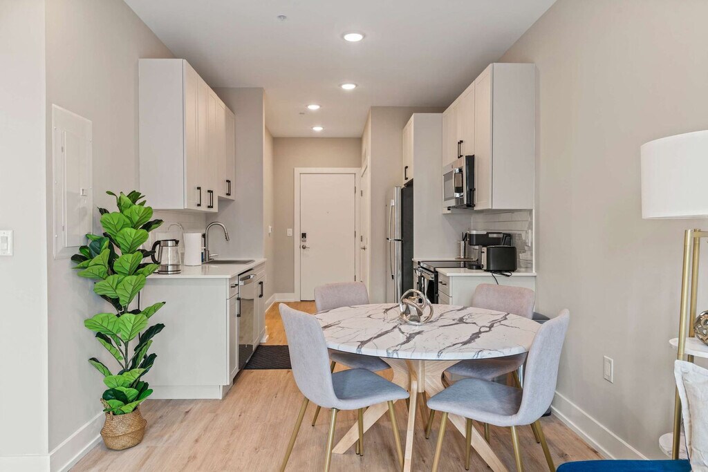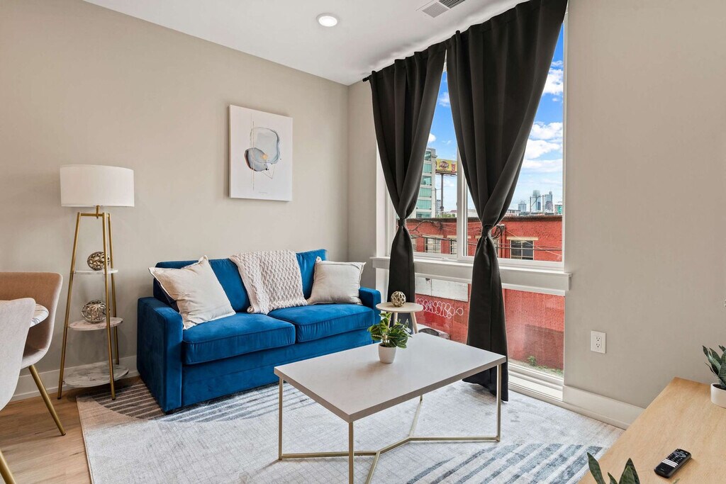 Nestled in a vibrant neighborhood, this charming 1-bedroom apartment offers a delightful retreat in the heart of the city. Located just steps away from bustling streets and cultural landmarks, this space is ideal for couples or solo travelers seeking a comfortable stay with easy access to the city's attractions. This inviting 1-bedroom apartment is thoughtfully designed to cater to all your needs for a carefree and enjoyable stay. Step into the inviting living room, a stylish and comfortable space designed for relaxation and entertainment. The room is tastefully furnished with a plush sofa bed, offering both a cozy spot to lounge and an additional sleeping option for guests. Enjoy your favorite movies on the flat-screen TV, or simply unwind with a good book in the warm, welcoming ambiance. Retreat to the bedroom, where a comfortable queen-sized bed awaits, promising a restful night's sleep. The bedroom also offers plenty of storage space for your belongings, ensuring a clutter-free environment throughout your stay. The fully equipped kitchen features modern appliances and everything you need to whip up a delicious meal. Enjoy your culinary creations at the dining table. Pets are allowed depending on size. The following additional per pet cleaning fee applies: 1-4 nights: $25 per night, 5-29 nights: $200, and 30+ nights: $300. This apartment's prime location allows you to explore the city with ease. Discover local eateries, trendy boutiques, and cultural attractions just minutes from your doorstep. Whether you're here for business or leisure, this cozy apartment offers a perfect blend of comfort and convenience for your stay in the city. There are surveillance cameras in the hallways for security and a Minut device in the unit for noise level. No shoes are allowed in the house and guests are requested to do their dishes before leaving. Smoking is not allowed indoors, and if there is evidence of smoking, a $500 fine will be imposed.