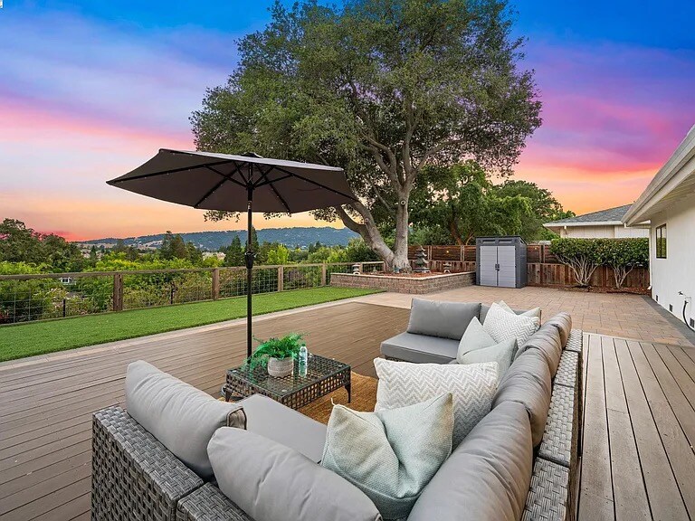 Property Id: 2390110 AMAZING PANORAMIC VIEWS! NEWLY REMODELED. Move-in Ready. Must see property Walking Distance to Downtown Pleasanton! Modern elegance meets prime location in this beautifully updated home in Pleasanton Heights. Located near top rated schools and downtown Pleasanton, perfect for enjoying concerts in the park, the farmers market, amazing restaurants and shops. Features include a freshly remodeled chef inspired kitchen, formal dining room, cozy living area with 2-sided fireplace, and a beautifully landscaped backyard with a wood deck, garden, and stunning Pleasanton Ridge views. The property also offers a convenient side yard with potential for RV parking. The primary suite features a dual vanity sink and tiled stall shower. Additional upgrades include beautifully updated wood plank flooring, recessed lighting, epoxy garage flooring, and more. This move in ready home blends comfort, style, and convenience.