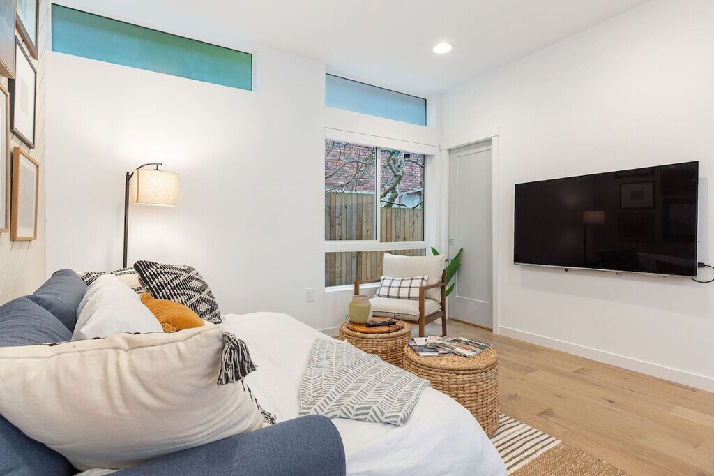 The advertised rate of $6,072/month is the lowest available price, based on a 1 month(s) stay with a move-in date of April 20, 2026. Rates vary depending on the duration of stay, season, and other parameters. For exact pricing and additional pricing components, please visit our website and enter your desired move-in and move-out dates. The rate is applicable when billed upfront; it can be higher if billed in multiple payments. Discover the perfect Capitol Hill retreat and feel at home in this modern 4-story townhome. Located on a peaceful side street, this property boasts 2 bedrooms and 2 baths. This thoughtfully designed space features a bright living area with a comfortable sofa bed, a fully equipped kitchen, and a dining space on the first floor. The second floor offers a cozy bedroom with a queen bed, a full bathroom with a tub/shower combo, plus laundry. The third floor features a primary bedroom with a queen bed and a private en-suite bathroom. Enjoy mini-split AC on every floor, a fully stocked kitchen with appliances, cookware, a Keurig coffee machine, and spices. High-quality mattresses with premium bedding ensure a perfect night's sleep, and blazing-fast 400 Mbps internet is available for streaming or remote work. The fourth floor features a private rooftop patio with outdoor seating. A $35/night pet fee applies. Paid parking is available across the street for guaranteed spots. A city guest permit is provided for free street parking. With a stellar 96 walk score, this centrally located townhome is just one block from Broadway's vibrant dining scene and minutes from Volunteer Park. The Capitol Hill Link Light Rail is a 9-minute walk, connecting you to downtown Seattle in just 5 minutes. The transit score is 79 and the bike score is 88. This property has multiple stories with stairs throughout and is not handicap accessible. Guests must be comfortable navigating 4 floors. No smoking or vaping is allowed inside or out, and no parties are permitted. Quiet hours are from 10 pm to 8 am. There is a $500 fine per violation. Shoes should not be worn indoors. [SI]