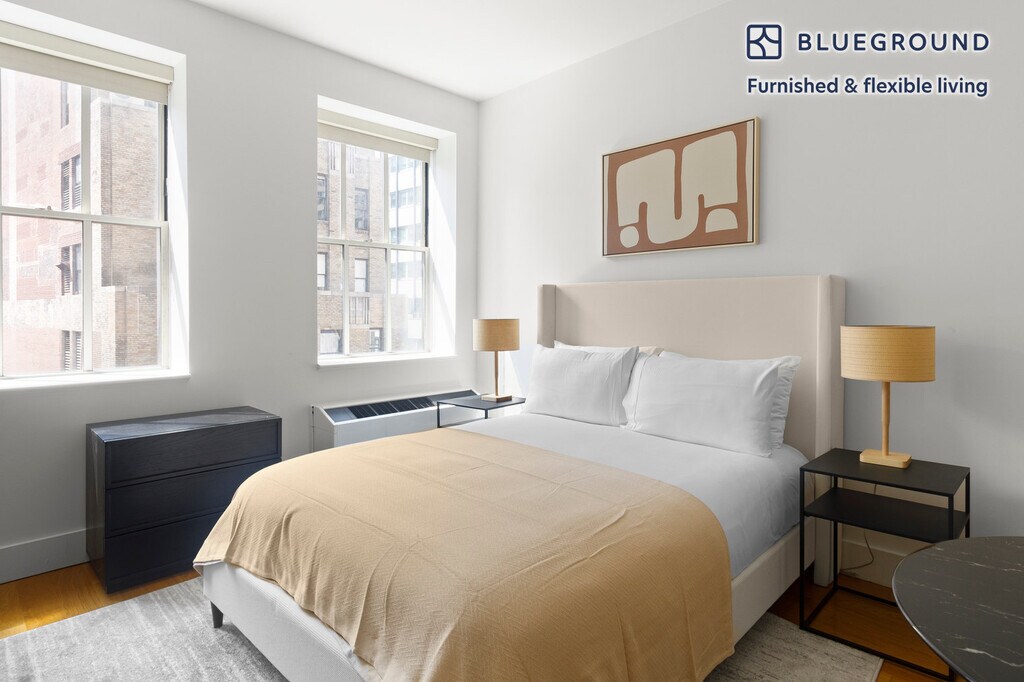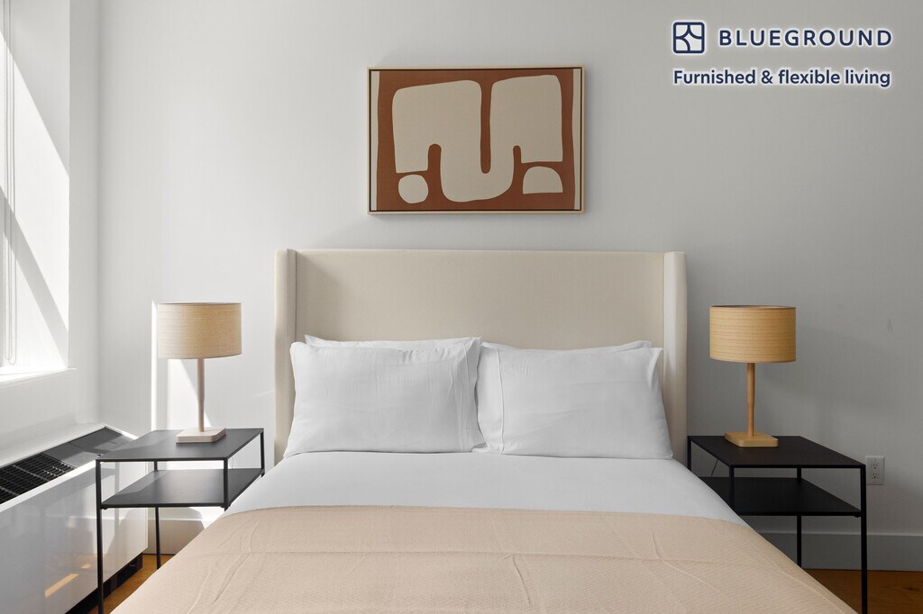 Discover the best of New York, with this studio apartment in Financial District. It’ll be easy to simply show up and start living in this furnished apartment with its fully equipped kitchen, living room, and our dedicated, on-the-ground support. (ID #NYC1969) The advertised rate of $4,440/month is the lowest available price, based on a 12 month(s) stay with a move-in date of July 1, 2026. Rates vary depending on the duration of stay, season, and other parameters. For exact pricing and additional pricing components, please visit our website and enter your desired move-in and move-out dates. The rate is applicable when billed upfront; it can be higher if billed in multiple payments. Brokers are welcome to reach out. Were you looking for an unfurnished lease? Try Blueground instead and upgrade from unfurnished to furnished living: - Furnished at rates comparable to unfurnished - No setup or furniture costs - save thousands - Move-in ready - save time, just bring your suitcase Designed with you in mind Gorgeous furniture, fully equipped kitchen, smart TV, and a premium wireless speaker are just a few of the amenities you’ll find inside this studio apartment. Ideally located in New York, you’ll find a lot to love outside as well. When you’re ready to relax, you’ll be happy to discover every Blueground bedroom comes with superior quality mattresses, fully stocked linens, and cozy towels. We handle everything so you can simply show up and start living. Sleeping arrangements Queen Bed, 63in/160cm Amenities Building amenities unique to this studio apartment include an on-site: - Doorman - Dryer in building - Elevator - Game room - Washing machine in building - Lounge - Library - Media room - Pets allowed - Playroom - Rooftop BBQ Arrival and ongoing support The entire apartment is yours to enjoy! Throughout your stay, you’ll have access to our Client Experience team through the Blueground App. You can schedule additional cleanings, submit maintenance requests, and view our neighborhood recommendations with just a few taps. We’ll share all details upon confirmation of your stay. Ideally Located This furnished apartment is located in the Financial District, also known as FiDi. Home to Wall Street, One World Trade Center, the South Street Seaport, and Bowling Green it is a constant hub of activity. During the week the sidewalk is always bustling and the restaurants are filled with professionals. The glittering skyscrapers and well-known landmarks make this one of the city’s most recognizable and historic neighborhoods. By subway, Times Square is about 20 minutes away. Other things to note Building amenities may have an extra cost. This Blueground apartment has flexible lease options, allowing you to book it for one month, a year, or more. Pets are welcome, though weight limits and breed restrictions apply and may incur fees. Brokes CYOF. We take great pride in ensuring every photo displayed is shot in our own units with our actual furnishings. That said, we regularly refresh our decor and furniture arrangement, which may differ from what’s pictured. [SI]