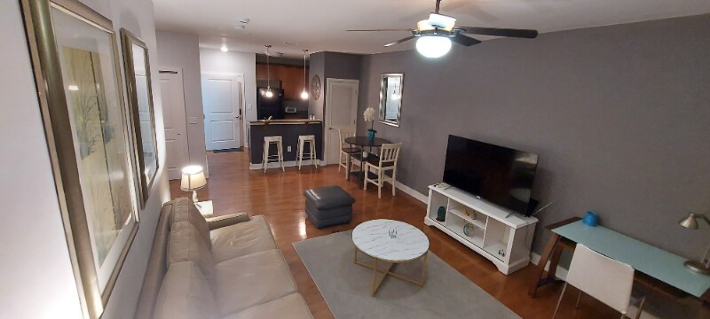 Furnished Rental Studio. Steps away from Wesley Heights Greenway entrance, walk or bike to Panthers Stadium, Groceries, Restaurants, and Breweries. 5 minutes to Wells Fargo Bank, 8 minutes to Bank of America Corporate Center, 12 minutes to Airport, 9 minutes to Novant Health Presbyterian Medical Center, 10 minutes to Northeastern University and UNCC Uptown,10 minutes to Atrium Health Medical Center. Steps to public transportation. The unit features granite countertops in the kitchen and bath, and hardwood flooring throughout. Fully stocked kitchen, bed, and bath essentials. Due to HOA guidelines, A 6-month Minimum stay requirement. Make this place your home away from home! Owner is Broker