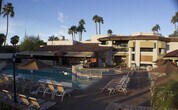 Escape to the Scottsdale Camelback Resort, nestled at the base of Camelback Mountain in Scottsdale, Arizona. This Monterey Villa offers 700 sq. ft. of living space with high, vaulted ceilings, a second-floor loft, and a private balcony. Feel at home with a king bed on the main level and a queen bed in the loft, providing ample space for up to four guests. The villa features a fully equipped kitchen with a glass stovetop, microwave/convection oven, dishwasher, and refrigerator/freezer. Enjoy the convenience of an in-unit washer/dryer, a wood-burning fireplace, and a whirlpool tub in the master bath. Relax on your private balcony or unwind by the outdoor fireplace after a day of exploring. Enjoy complimentary public parking on-site. Additional charges apply for resort amenities such as happy hour, movie nights, and meeting/banquet facilities. A resort fee of $20.63 USD per day is payable at check-in. Located in a quiet residential neighborhood, the resort is just minutes from downtown Scottsdale, including Old Town, art galleries, shopping, award-winning dining, and nightclubs. Explore the natural wonders of the Sonoran Desert or enjoy world-class golf nearby. The resort's 11-acre desertscape property offers a perfect home base for your Scottsdale adventures. Guests must be at least 21 years old to make a reservation. A $300 USD deposit is required at registration. The property enforces a no-smoking policy with a $200 fine for violations, and no pets are allowed with a similar penalty. Quiet hours are from 9 pm to 8 am, and any noise violations will incur a $200 fine. No parties or events are allowed, with fines ranging from $200 to $500 for violations. Check-in requires a state identification card or driver's license copy. Scottsdale Camelback Resort is your home-away-from-home, offering Spring Training baseball, championship golf, arts, and culture. The resort features beach chairs, loungers, a heated outdoor swimming pool, a fitness center, a picnic area, BBQ facilities, and more to make your stay exceptional.