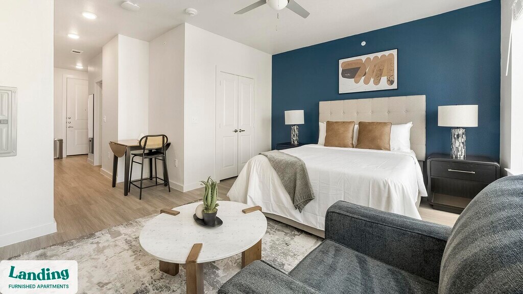 Landing offers flexible lease terms from weeks to months. Please always visit our website or contact us for the latest pricing & availability. Stay longer, save more: 6-Month Minimum base rent: starts at $1655/mo 12-Month Minimum base rent: starts at $1612/mo Landing offers flexible leases across a network of over 35,000 fully-furnished apartments throughout 375+ cities so you can rent on your terms, practically anywhere, and avoid the hassle of paying deposits or application fees. Visit to learn about all the benefits of a Landing membership, see our competitive up-to-date pricing, explore available apartments, take virtual tours, and make reservations online without jumping through traditional rental hoops. Landing's apartments at SOFI at 6311 are designed for comfortable, easy living, with the ability to stay as long as you like. Experience living with Landing Every apartment is outfitted with all the modern essentials including: custom-designed furnishings, a fully-equipped kitchen with deluxe stainless steel appliances, a gourmet coffee maker, premium linens, Smart TVs, and incredibly fast, reliable internet for working from home. When you live with Landing, you'll enjoy a hassle-free experience with the added benefit of 24/7 access to our dedicated member experience team. Some of the nitty-gritty: a background check and proof of income are required; we're completely smoke-free; bundled utility packages and pricing vary based on length of stay; pet-friendly options available; listed price reflects a 12-month minimum stay.