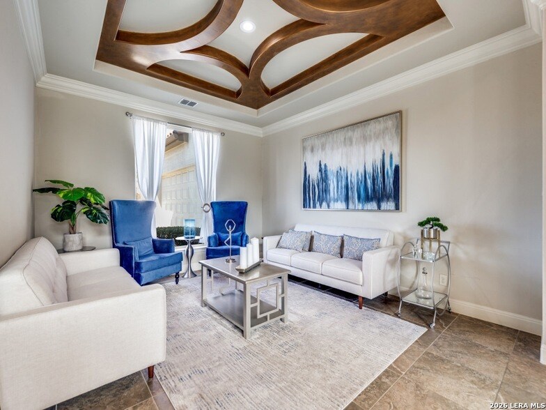 Fully furnished and move-in ready in The Dominion, this stunning 5-bedroom, 5.5-bath residence offers luxury living with space to entertain and unwind. Multiple living areas are complemented by soaring ceilings and a dramatic floor-to-ceiling stone fireplace that anchors the main gathering space. Enjoy a true resort-style backyard featuring a sparkling pool and inviting outdoor areas perfect for entertaining. Inside, the home is designed for fun and relaxation with a private theater room, game room, and even a golf simulator to keep your swing sharp year-round. Tastefully furnished throughout with high-end pieces, this home offers a seamless, turnkey opportunity to experience San Antonio living at its finest in one of the city's most prestigious communities.