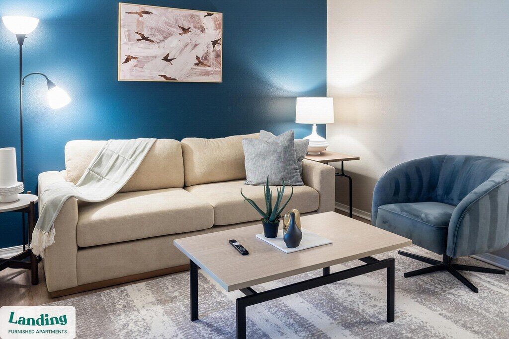 Landing offers flexible lease terms from weeks to months. Please always visit our website or contact us for the latest pricing & availability. Stay longer, save more: 6-Month Minimum base rent: starts at $1550/mo 12-Month Minimum base rent: starts at $1600/mo Landing offers flexible leases across a network of over 35,000 fully-furnished apartments throughout 375+ cities so you can rent on your terms, practically anywhere, and avoid the hassle of paying deposits or application fees. Visit to learn about all the benefits of a Landing membership, see our competitive up-to-date pricing, explore available apartments, take virtual tours, and make reservations online without jumping through traditional rental hoops. Landing's apartments at Echo Trail Apartments are designed for comfortable, easy living, with the ability to stay as long as you like. Experience living with Landing Every apartment is outfitted with all the modern essentials including: custom-designed furnishings, a fully-equipped kitchen with deluxe stainless steel appliances, a gourmet coffee maker, premium linens, Smart TVs, and incredibly fast, reliable internet for working from home. When you live with Landing, you'll enjoy a hassle-free experience with the added benefit of 24/7 access to our dedicated member experience team. Some of the nitty-gritty: a background check and proof of income are required; we're completely smoke-free; bundled utility packages and pricing vary based on length of stay; pet-friendly options available; listed price reflects a 12-month minimum stay.