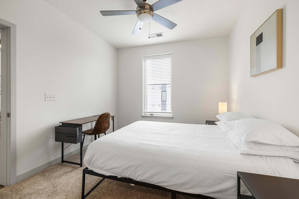 Feel at home in this condo located in Louisville's best neighborhood. This apartment features soaring 9ft ceilings, elegant tiling, and modern decor. This cozy apartment is suitable for a family, group of friends, or business travelers and has all of the amenities necessary to enjoy your stay. Great amenities include a fully equipped kitchen, a smart TV with streaming apps installed, complimentary coffee, a fitness center, a lobby, a lounge, a library, and a pet park and washing station. Gym, pool, pet park, clubhouse, and lounge access are included. Locals call the hip, affluent East Market District as NuLu and the best place to stay in Louisville. This neighborhood is a dining hub with eateries spanning upscale New American cuisine to casual BBQ, plus stylish bars pouring craft beer and bourbon. Shops sell vintage clothing, women’s fashion, gourmet eats, or restored furniture. Contemporary galleries stay open late for the monthly First Friday Hop street party, with art shows, live music, shopping, and street food. Smoking of any kind is not permitted within or outside of the apartment, including balconies, patios, or common and/or parking areas. Any sign of smoking is a violation of the stay agreement, which may result in immediate termination and recovery fees beginning at $500. There is a $200 penalty for removing smoke detectors, a $200 penalty for lost key fobs, and no outside guests are allowed without permission. There is a maximum of 2 pets allowed (40lbs combined) and no Pit Bulls or Bull Mastiffs [similar breed] are permitted. An additional $100-300 pet fee based on stay length is collected separately. Quiet hours are between 9pm-8am each day. Check-in is at 4 PM and check-out is at 11 AM (with a $75/hr late fee). Registration Number: LIC-STL-25-00964