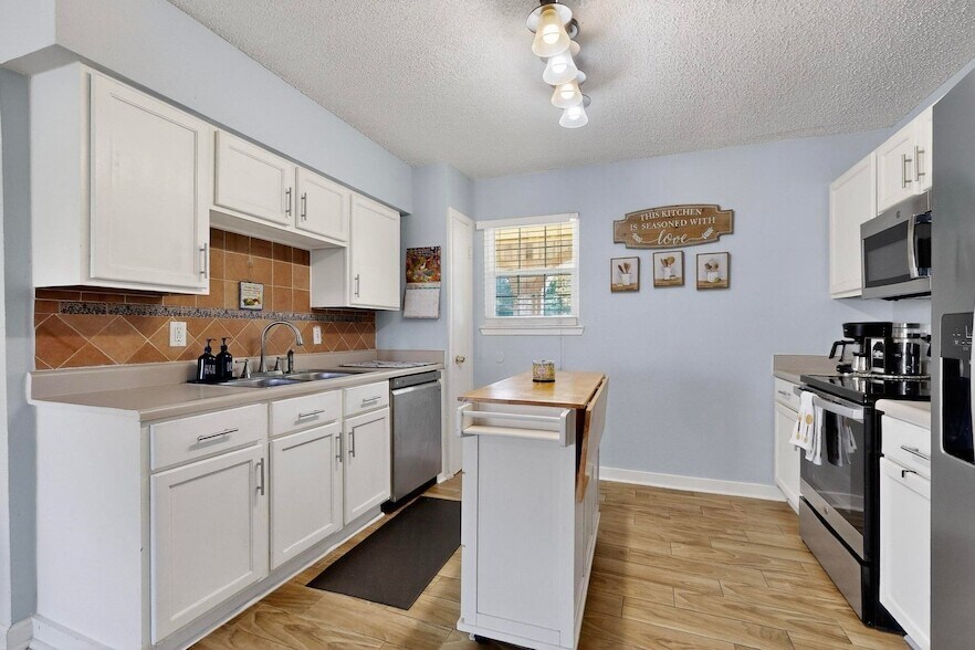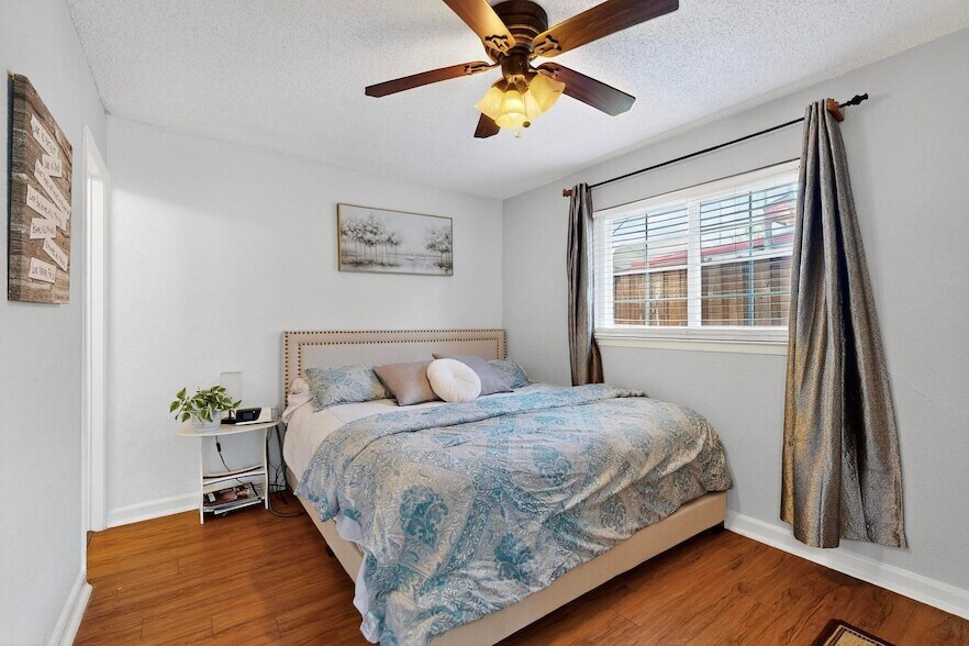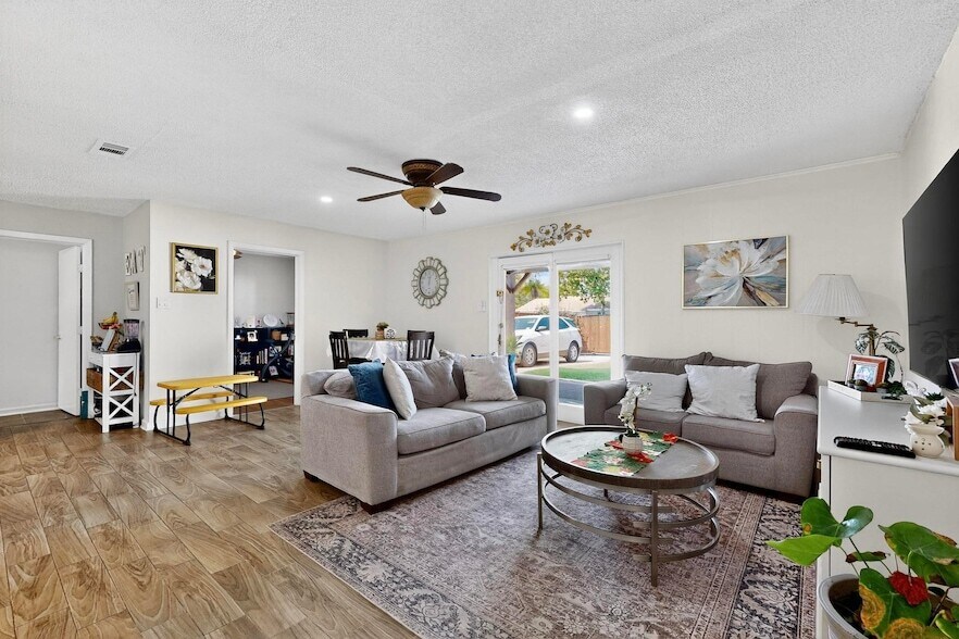 Recently updated property in great condition with 4 Bedrooms and 2 Full Bathrooms. With an open concept layout which positions the primary and two of the secondary bedrooms on one side of the property, and the living spaces and kitchen on the other. Currently, the 3rd secondary bedroom is being used as a fitness room and is situated immediately next to the living area. The kitchen is bright and open with a moveable island that is to stay on the property. Large full sized laundry room off on site and immediately next to the kitchen. The backyard is open and immaculately manicured featuring several plants as well as an updated pergola. This is a desirable neighborhood and a great property for anyone looking for at least a year lease! Schedule a showing today!
