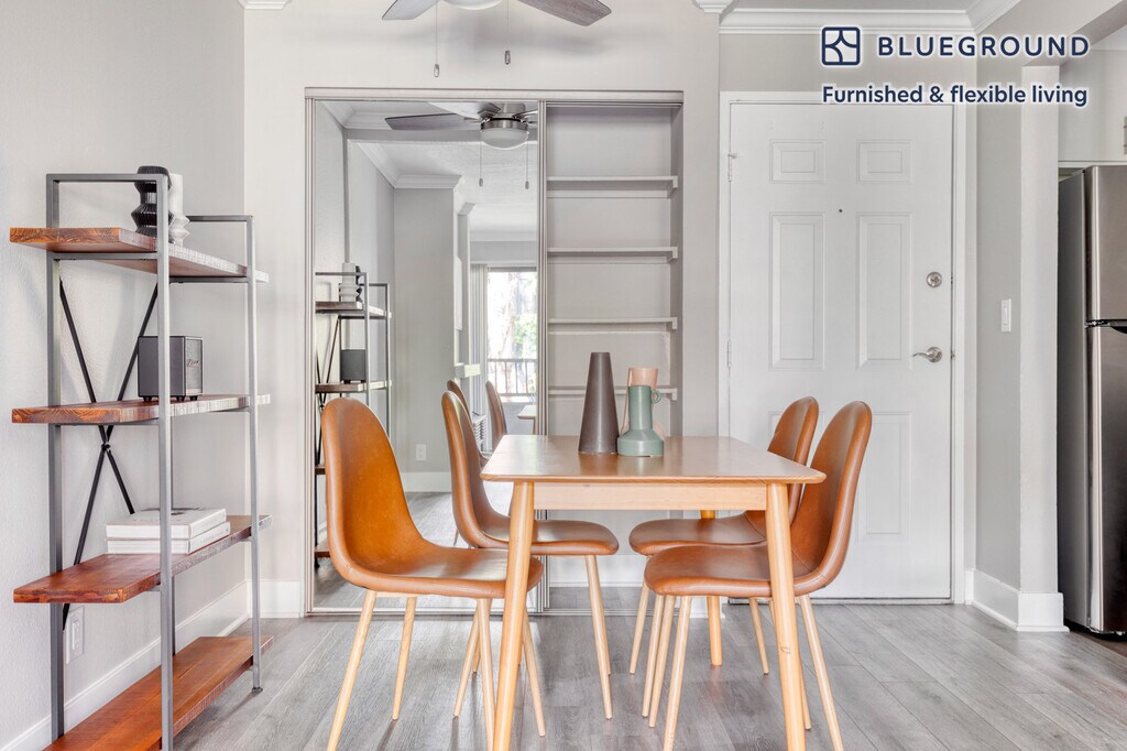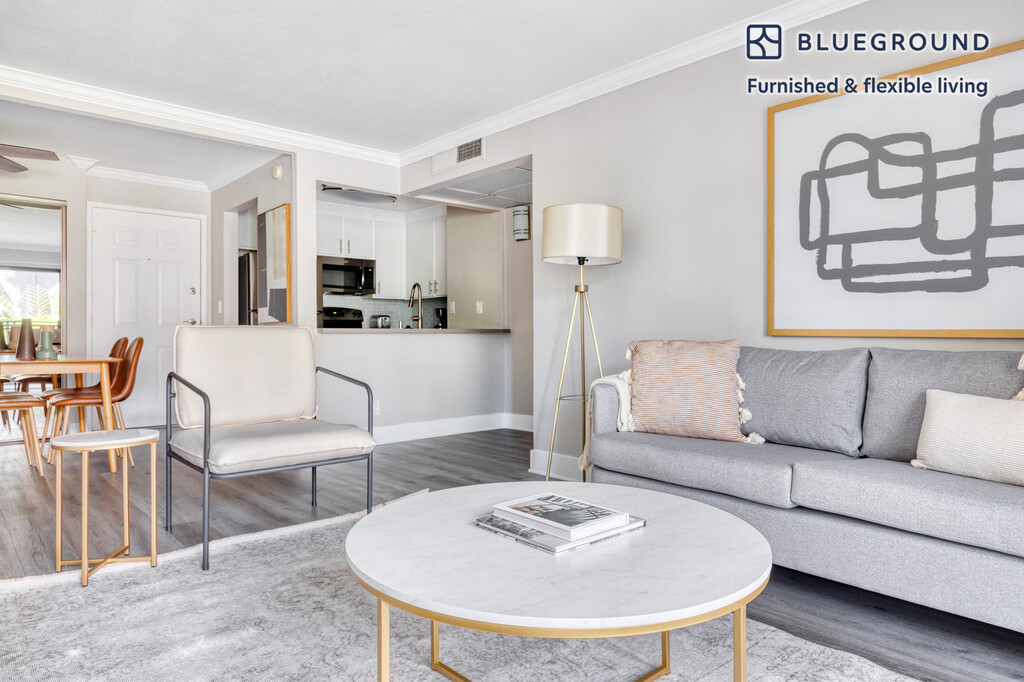 Discover the best of Los Angeles, with this one bedroom apartment in Warner Center. It’ll be easy to simply show up and start living in this elegantly furnished apartment with its fully equipped kitchen, lovely living room, and our dedicated, on-the-ground support. (ID #LAX694) The advertised rate of $2,460/month is the lowest available price, based on a 11 month(s) and 29 day(s) stay with a move-in date of June 1, 2026. Rates vary depending on the duration of stay, season, and other parameters. For exact pricing and additional pricing components, please visit our website and enter your desired move-in and move-out dates. The rate is applicable when billed upfront; it can be higher if billed in multiple payments. Brokers are welcome to reach out. Were you looking for an unfurnished lease? Try Blueground instead and upgrade from unfurnished to furnished living: - Furnished at rates comparable to unfurnished - No setup or furniture costs - save thousands - Move-in ready - save time, just bring your suitcase Designed with you in mind Thoughtfully designed with bespoke finishes, modern furnishings, and a fully equipped kitchen, you’ll enjoy that “I’m home” feeling with this Blueground apartment. Whether you’re lounging in your sophisticated living room streaming the latest and greatest entertainment on the smart TV or premium wireless speaker, or getting some well-earned rest on the superior quality mattress with luxury linens, you’ll fall in love with everything this Warner Center apartment has to offer. This apartment also offers in-apartment laundry. Sleeping arrangements King Bed, 70.8in/180cm Amenities Building amenities unique to this one bedroom apartment include an on-site: - BBQ Area - Dryer - Elevator - Swimming pool - Washing machine - Parking - Pets allowed Arrival and ongoing support The entire apartment is yours to enjoy! Throughout your stay, you’ll have access to our Client Experience team through the Blueground App. You can schedule additional cleanings, submit maintenance requests, and view our neighborhood recommendations with just a few taps. We’ll share all details upon confirmation of your stay. Other things to note Building amenities may have an extra cost. This Blueground apartment has flexible lease options, allowing you to book it for one month, a year, or more. Pets are welcome, though weight limits and breed restrictions apply and may incur fees. Parking is offered based on availability and is subject to a fee. We take great pride in ensuring every photo displayed is shot in our own units with our actual furnishings. That said, we regularly refresh our decor and furniture arrangement, which may differ from what’s pictured. Also note - This apartment is not located near public transportation - This apartment faces the street - There are air conditioners in each bedroom