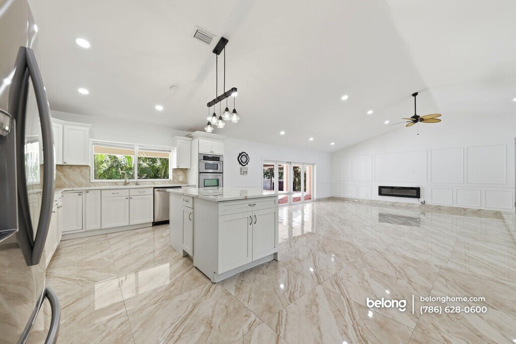 Expansive in scale and refined in presentation, this 6-bedroom, 4.5-bath ranch offers 3,583 square feet of thoughtfully composed living space in Parkland’s esteemed Pine Tree Estates. Set within an upscale and peaceful community, this home balances architectural presence with everyday livability, complemented by a private pool that elevates outdoor enjoyment. Inside, vaulted ceilings and wide-plank tile flooring create a grand yet composed atmosphere across the main living areas. The open-concept layout connects the living room, dining area, and kitchen in one cohesive sweep, allowing gatherings to unfold with ease and elegance. Recessed lighting, a contemporary ceiling fan, and a wall-mounted fireplace accent the living space, while expansive glass doors frame views of the pool and invite natural light indoors. The kitchen is both generous and polished, featuring extensive cabinetry, sleek countertops, a substantial center island, stainless steel appliances, and statement pendant lighting. Its proportions comfortably support daily routines as well as larger-scale entertaining. Six well-sized bedrooms and 4.5 baths provide flexibility for guests, work, or leisure. Two pets are allowed, offering additional versatility. Outdoors, the private pool and covered patio create a secluded retreat ideal for quiet afternoons or evening gatherings. Pine Tree Estates is known for its spacious lots and tranquil setting, yet remains close to The Shoppes at Heron Lakes, Publix, Parkland Golf and Country Club, and scenic trails at Pine Trails Park, with convenient access to Sawgrass Expressway for regional travel. *Fireplace is for decorative use only and cannot be used without consent from Belong. *Our homes come as-is with all essentials in working order. Want upgrades? Request it through the Belong app, and our trusted pros will take care of the rest!