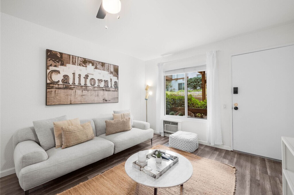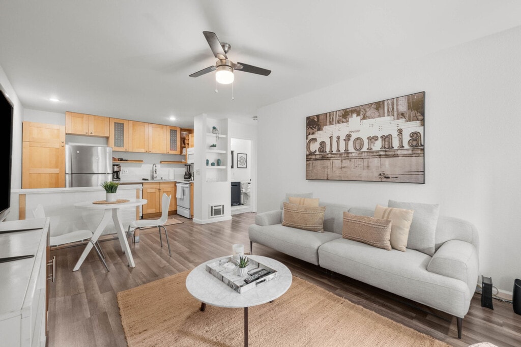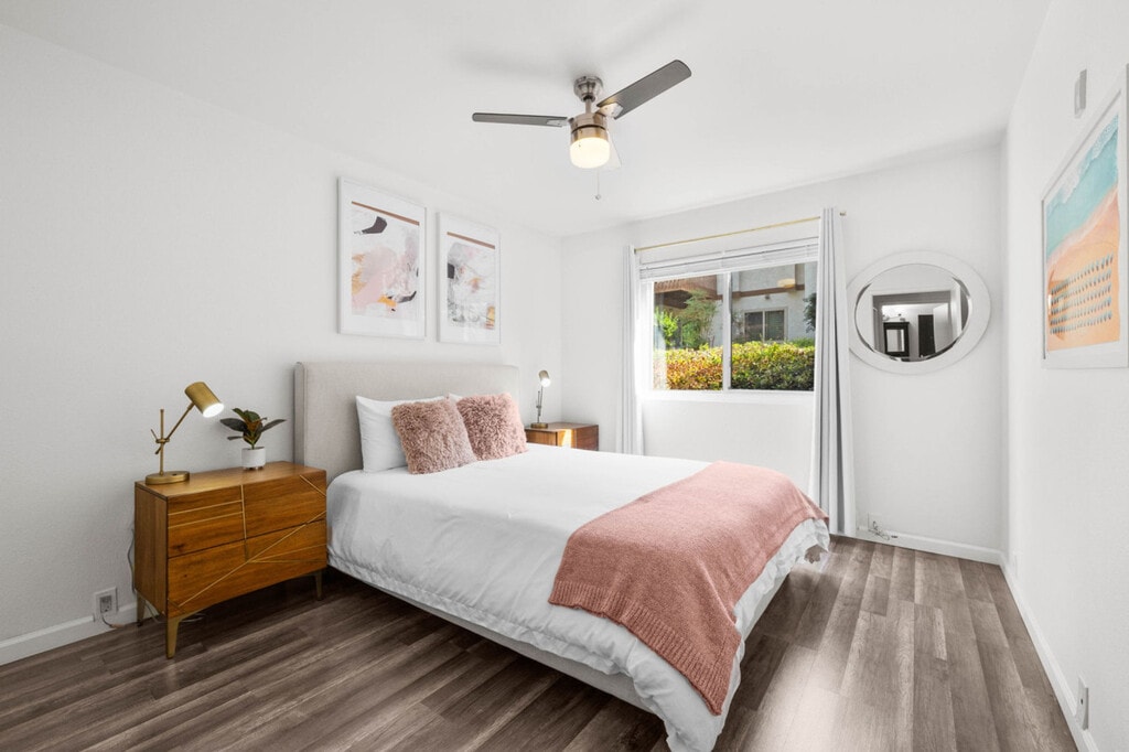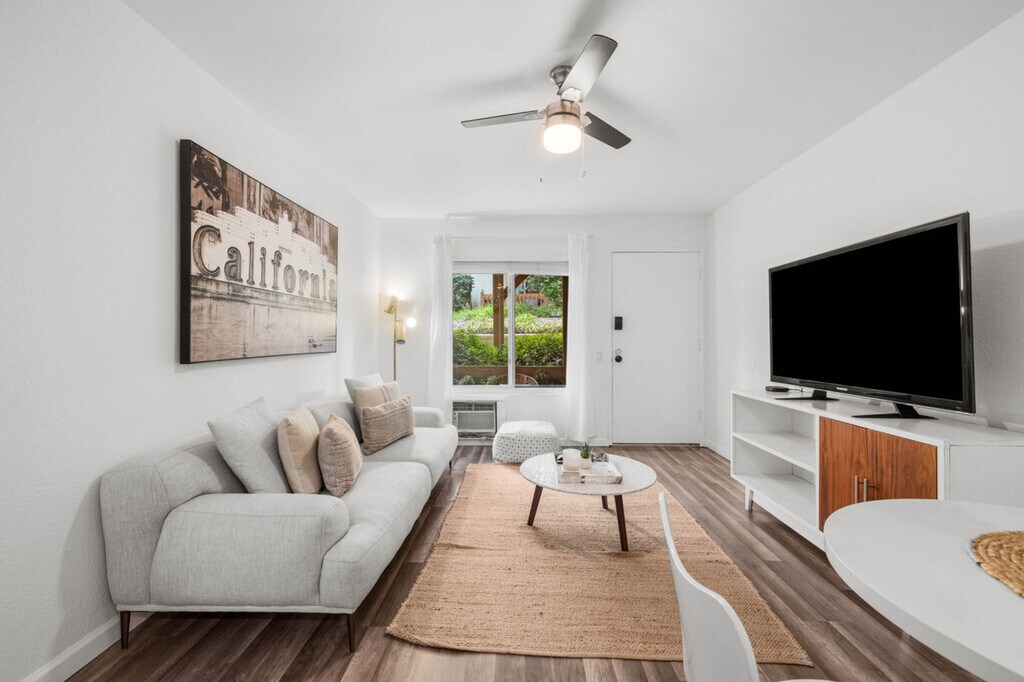 Welcome to your new home in the heart of Mission Valley! This 1-bedroom, 1-bathroom ground-floor condo was designed with comfort and convenience in mind. Fully furnished and move-in ready, it’s the perfect place for professionals, travelers, or anyone looking for a tranquil yet central San Diego base. Inside the condo, you'll find a bright patio to enjoy the San Diego sunshine, modern furnishings throughout, and a spacious living room with a 55” Roku TV, ceiling fan, and wall AC unit. The fully equipped kitchen is perfect for everyday cooking. The cozy bedroom features a queen bed with a memory foam topper, blackout shades, ceiling fan, and a walk-in closet. The large bathroom offers plenty of storage. Ask about our family add-ons: early check-in, late check-out, Pack 'n Play crib, beach wagon, and car rentals to save the hassle of the rental agency. The community offers a sparkling pool and hot tub, outdoor BBQ area, game room and community lounge, laundry facilities onsite, and a small dog play area. Parking includes 1 assigned covered carport and 1 unassigned permit on a first-come, first-served basis, with additional street parking nearby. Well-behaved pets are welcome per our pet policy with a fee of $100 per pet per month for up to 2 pets under 40 lbs each. This super convenient Mission Valley location offers easy access to major freeways and the trolley. It's just down the street from Fashion Valley mall, Costco, and Ikea, and provides a quick commute to Downtown, San Diego beaches, shopping, and dining. The condo is also close to top medical centers: Kaiser Zion (0.5 mi), Rady Children’s (5 mi), UC San Diego Medical (6 mi), Sharp Grossmont (8 mi), and more. The entire community is non-smoking, and smoking indoors will incur a $400 charge. Quiet hours are from 10 p.m. to 9 a.m., and no parties are allowed. Undeclared guests will be charged $65 per person per night if not disclosed. There is a $100 fee for tampering with Wi-Fi, outdoor security cameras, locks, etc. Unlawful use of the home, including illegal activities or substances, will result in a $500 fee. Shoes should be off upon entry, and coasters and trivet mats should be used to prevent damage to surfaces. The garbage disposal should not be used for metal, plastic, egg shells, grease, potato peels, bones, coffee grounds, pasta, or celery. For monthly guests, there is a utility cap of $200, and guests will be responsible for any overages. HOA rules must be adhered to, or there is a risk of being deplatformed. [SI]