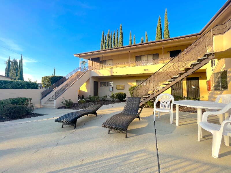 Property Id: 1704421 Cozy bottom floor 2-bedroom, 1-bath rental in Upland. Both bedrooms feature ceiling fans. Detached garage parking is available for $45/month. This gated complex includes on-site laundry facilities and a pool.