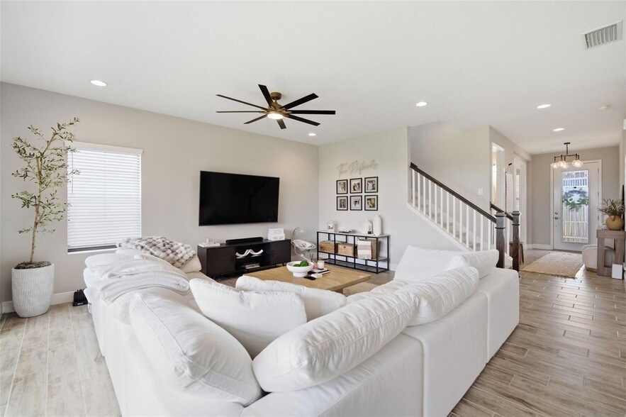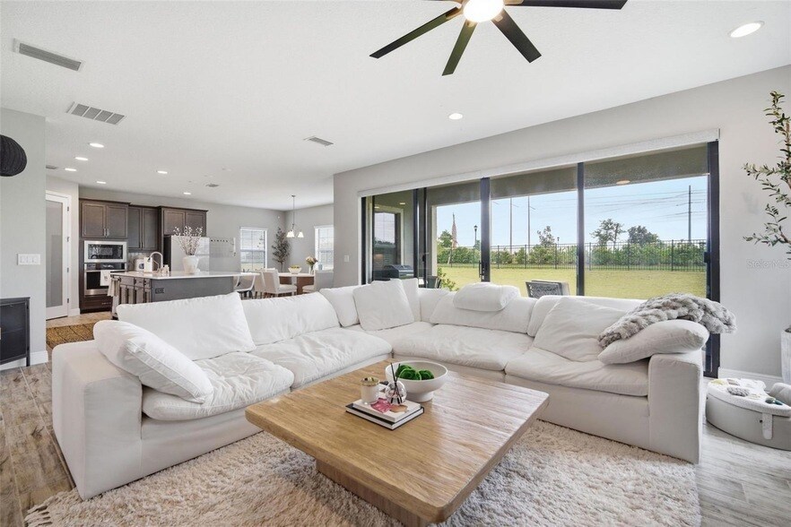 Welcome to this bright and impeccably maintained 4-bedroom, 2.5-bath home located on a quiet cul-de-sac in the highly sought-after Waterset community. This spacious home features a versatile main-floor office/den with a large storage closet, perfect for working from home or additional flex space. Enjoy modern living with large-format plank tile throughout the main level and luxury vinyl plank flooring on the stairs and second floor, no carpet anywhere. The gourmet kitchen is a standout, offering quartz countertops, upgraded appliances, a built-in oven and microwave, and a gas cooktop with a sleek hood vent. The open-concept layout is enhanced by four glass sliding doors that flood the home with natural light and lead to a private, oversized backyard with a covered lanai, perfect for indoor-outdoor living. Lawn care is included for added convenience. Upstairs, you ll find a spacious loft along with a luxurious primary suite featuring a spa-like bathroom with a soaking tub and a large walk-in closet with custom organization. Additional highlights include a water softener and a clean, move-in-ready feel throughout. Living in Waterset means access to an exceptional array of resort-style amenities, including multiple pools, clubhouses, fitness centers, walking and biking trails, parks, playgrounds, and sports courts. The community also offers convenient access to nearby shopping, dining, and top-rated schools. Ideally located just a short drive to Tampa, this home provides easy access to major highways, Tampa International Airport, downtown Tampa, MacDill Air Force Base, and some of Florida s most beautiful Gulf Coast beaches. This home truly offers the perfect blend of luxury, convenience, and lifestyle.