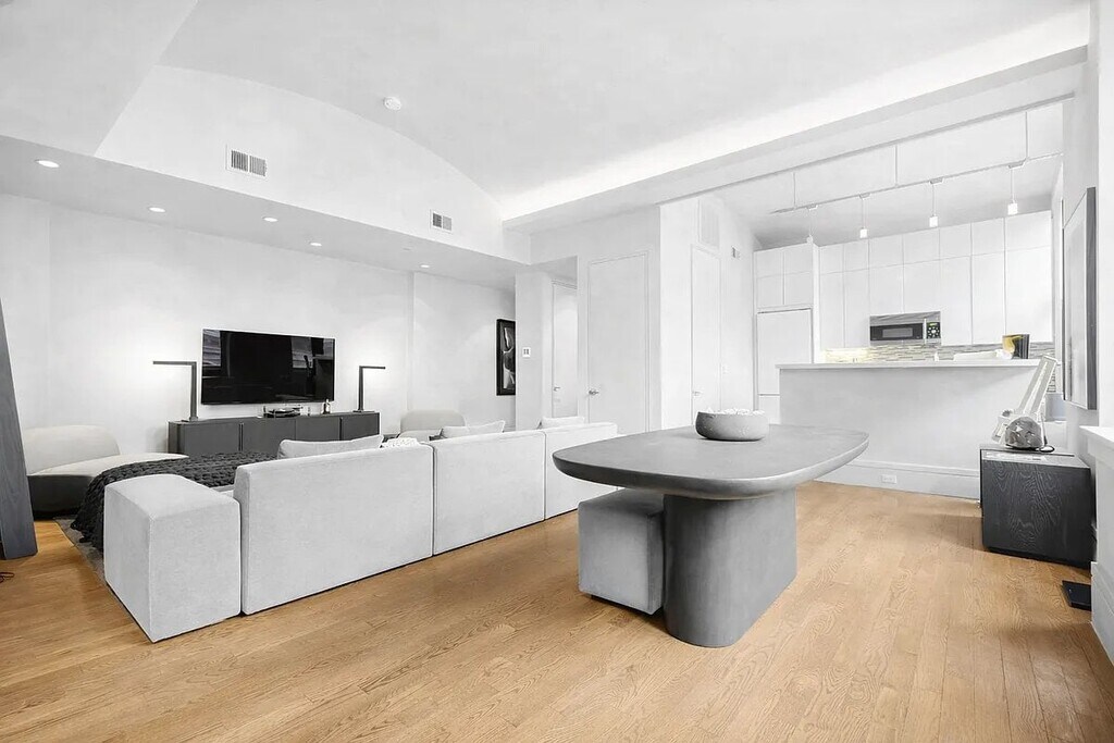 This sun-filled one-bedroom loft showcases dramatic 12 barrel-vaulted ceilings and nine oversized arched windows, offering stunning natural light and open northern exposure. The spacious layout features an open, modern kitchen with a beautifully tiled backsplash, stainless steel appliancesincluding a Miele dishwasher and Liebherr refrigeratorand a convenient breakfast bar.Thoughtful contemporary details are found throughout, including a sleek modern bathroom, solid oak hardwood floors, custom built-out closets, and elegant lime-wash walls. The queen-sized bedroom provides excellent proportions, while additional comforts include central air conditioning and an in-unit Bosch washer/dryer.Residents of 8B enjoy a virtual doorman and 24-hour access to the buildings newly renovated private fitness center, equipped with state-of-the-art Technogym machines designed by Antonio Citterio, a Peloton bike, Kinesis Personal Vision system, and a Sunlighten mPulse bELIEVE eucalyptus infrared sauna.Located in the heart of the NoHo Historic District, 640 Broadway is a landmarked nine-story building surrounded by world-class art galleries, boutique shopping, premier dining, and vibrant nightlifeone of the citys most coveted downtown neighborhoods.