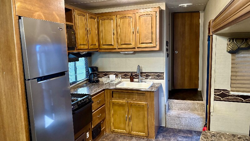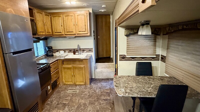 Property Id: 2174812 200 sq ft furnished camper with full sized bed, couch, and dining table. WiFi and utilities (water, sewer, electric, gas) included. Camper is located at a quiet, family-owned RV Park. Camper also includes dishes and pots/pans. There is a free on-site laundry room that is shared with the rest of the park. Tenants MUST have a reliable vehicle as the RV Park is secluded and the nearest store is over 2 miles away.