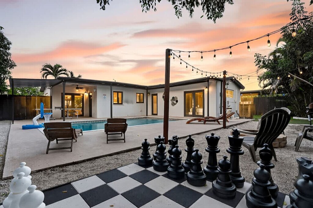 Feel at home in this 4-bedroom home in Hollywood, FL, offering an upscale stay close to the beach. This 1,507 Sqft² / 140m² home offers modern amenities, spacious spaces, a private pool, mini golf, a fire pit area, ping pong, a BBQ, and high-speed free Wi-Fi. This is a pet-friendly property. Please enter how many pets you are bringing with you before booking. You're in one of the most convenient neighborhoods in Hollywood, FL, close to the beach, nightlife, shopping, and major highways. Getting around is super easy with a car, and you'll have free parking in the driveway for up to 3 cars. Major roads like 441, I-95, and Hollywood Blvd are just minutes away, making it easy to explore all of South Florida. The Hard Rock Casino is 12 minutes away, Hollywood Beach & Boardwalk is 15 minutes away, Downtown Hollywood is 10 minutes away, TY Park is 8 minutes away, Dania Pointe & Oakwood Plaza are 15 minutes away, and Fort Lauderdale Airport (FLL) is 18 minutes away. Uber & Lyft are readily available and affordable. Several buses run nearby, with stops within walking distance. The Brightline train station (Aventura or Fort Lauderdale) is approximately 20 minutes away. The neighborhood is residential, but there are a few shops, cafes, and local spots within walking distance. Driveway parking is available for up to 3 cars (no parking on the street or grass, as the city will issue a fine). No smoking is allowed inside the house. If the BBQ grill is not cleaned after use, an extra $50 cleaning fee might apply. The landscaper will enter the property for scheduled lawn maintenance every 15 days, and the pool technician will conduct pool maintenance twice a week. Services are automatic and quick. [SI]