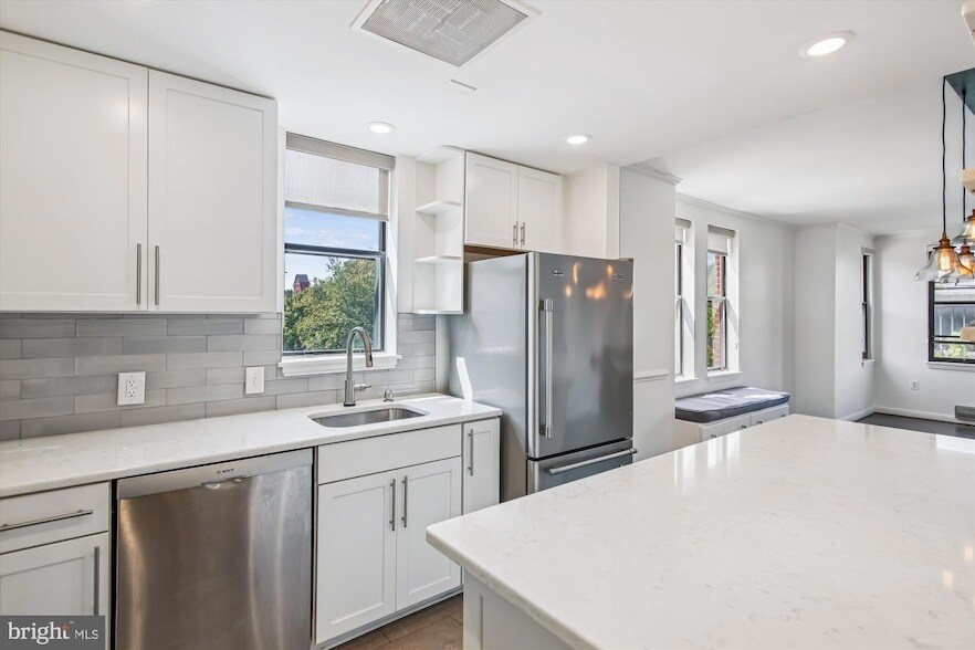 Welcome to The Penmark, ideally located in the heart of Capitol Hill just steps from Historic Eastern Market. This spacious one-bedroom, one-bath corner unit offers modern comfort and exceptional natural light with its western exposure. The updated kitchen features sleek quartz countertops, stainless steel appliances, and ample cabinetry, flowing seamlessly into the open living space with gleaming hardwood floors and custom built-ins. Retreat to the spa-like bathroom for relaxation at the end of the day. Enjoy the convenience of in-unit laundry and included garage parking an added bonus in this sought-after location. With Eastern Market, Barracks Row, shops, dining, and Metro all at your doorstep, this home offers the perfect blend of style, convenience, and city living.
