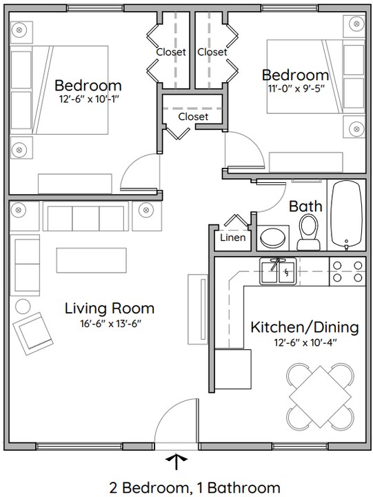 - 2BR, 1BA